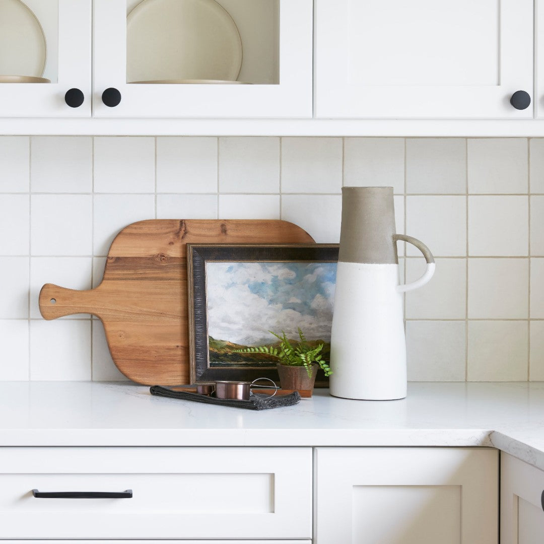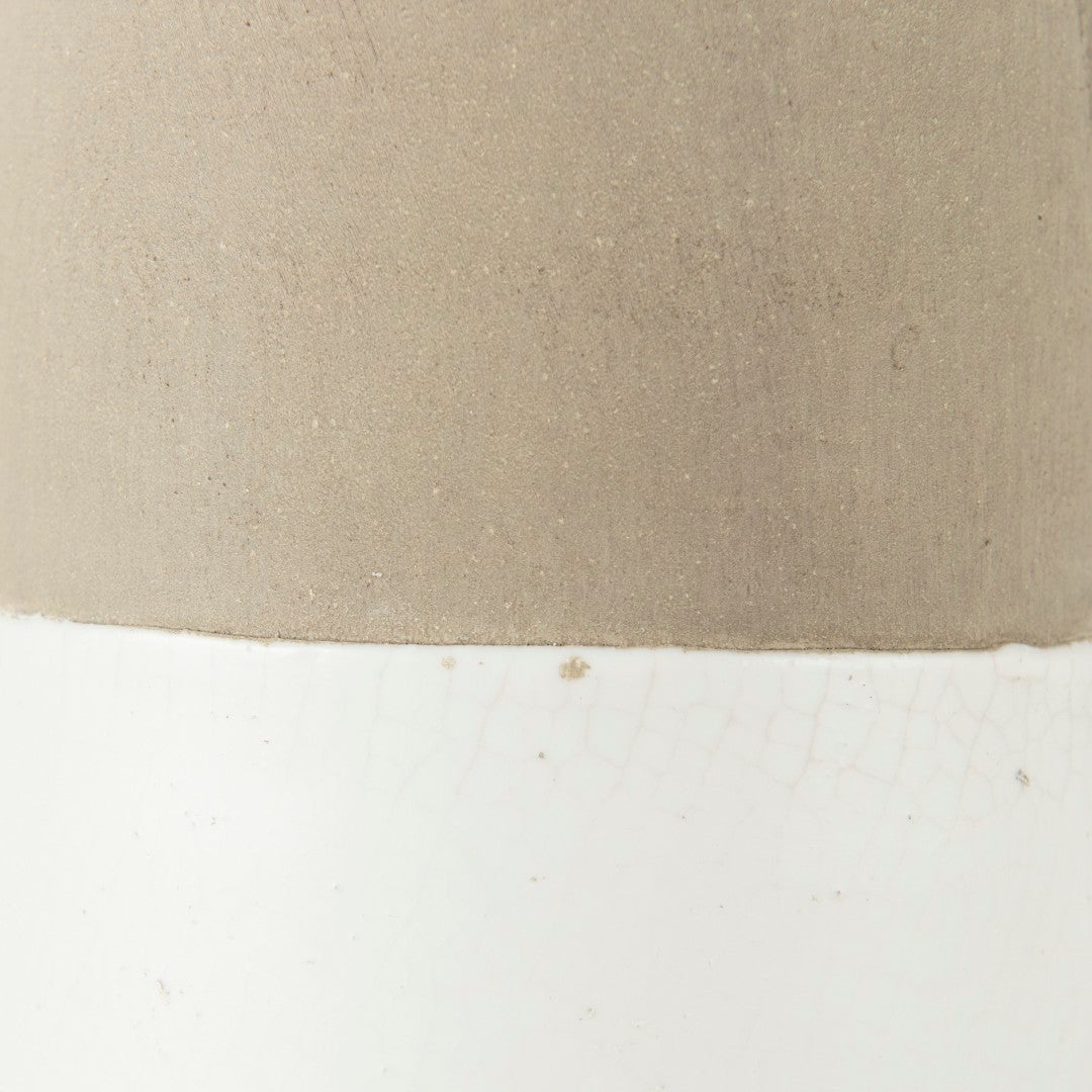 Add a touch of contemporary farmhouse charm to any room with this two-toned ceramic jug. Its elegant silhouette, warm natural glaze, and crisp white finish make it a versatile accent piece that works equally well in minimalist, coastal, or country-inspired interiors. Ready to display straight out of the box, it pairs beautifully with fresh or dried stems or stands alone as a sculptural object.