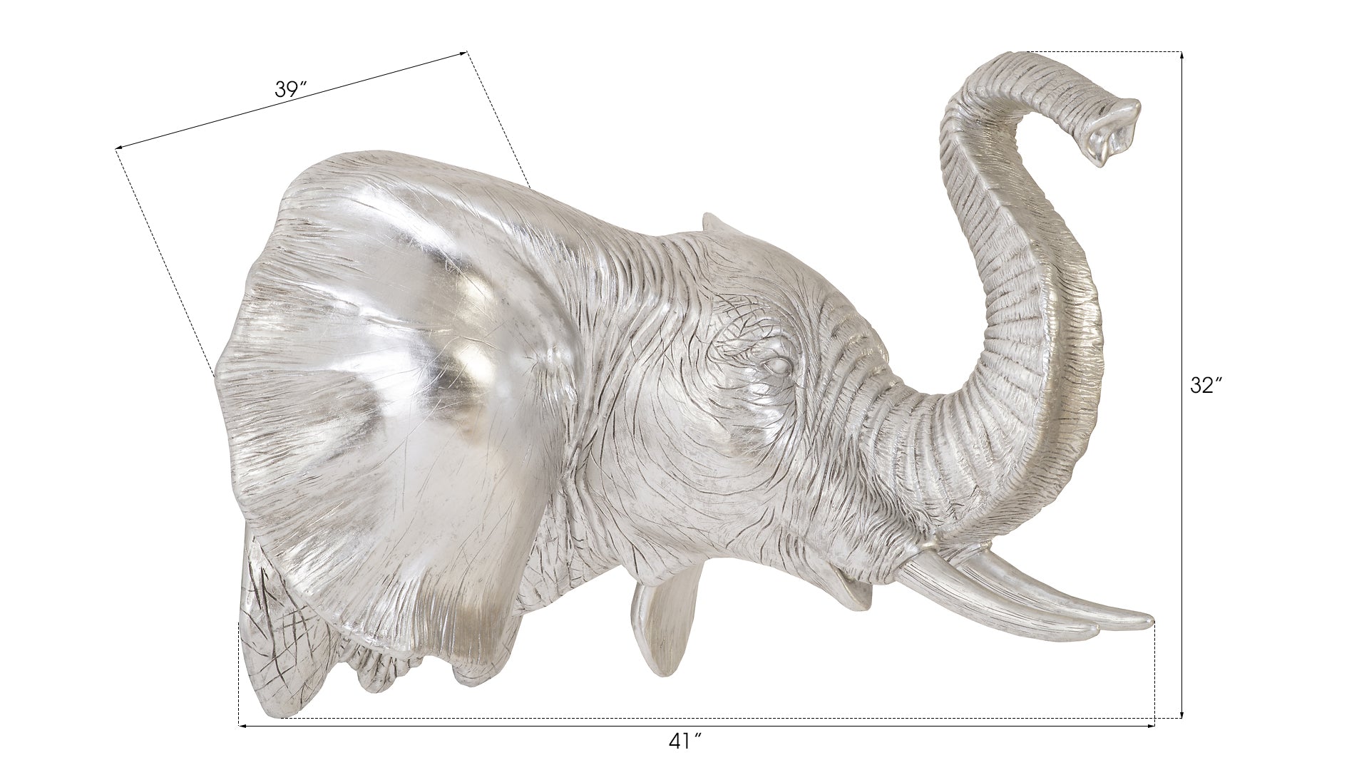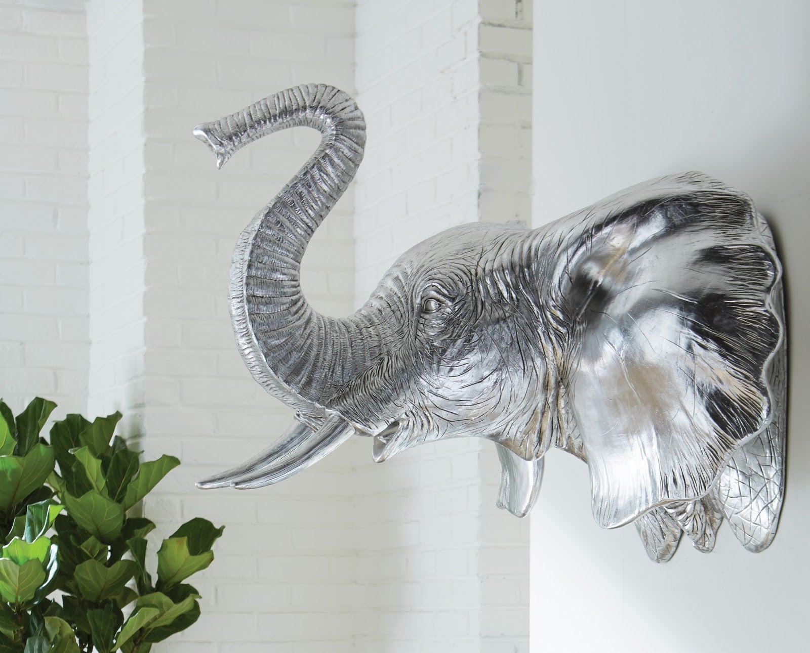 The Elephant Silver Wall Art brings a room all of the exoticism the big game hunter has been afforded throughout history without having to spend time schlepping across the plains of Africa! Plus, there’s no guilt for the non-hunter with our luminous silver sculpture, as it is made of composite in a silver leaf finish. Who knew an animal known for its might could look so glamourous! This decorative accessory reflects the ethos that Phillips Collection personifies: modern organic.