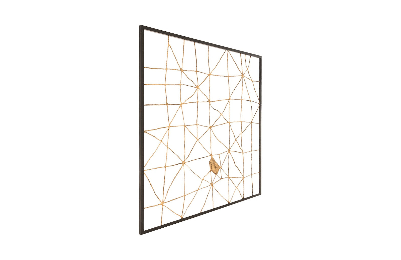 Opposites attract in the composition that we call the Mesh Wall Art. This results from the juxtaposition of dark and light finishes on the metal wall sculpture and the mix of smooth dark surfaces and textural light surfaces with their heavy dose of patina. It's large enough to be a focal point over a fireplace or buffet. The wall piece is made of iron but it's not overly heavy thanks to the lightness of the elements our artisans brought together. The abstract qualities intermingled with the contemporary feel of this piece exemplifies the Phillips Collection ethos of modern organic.
