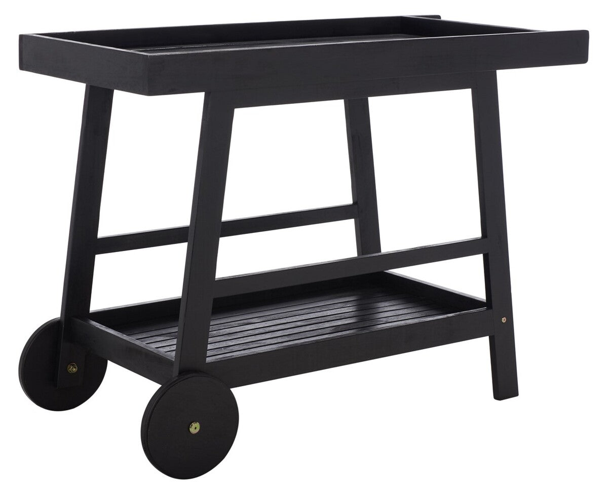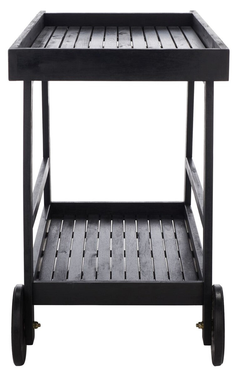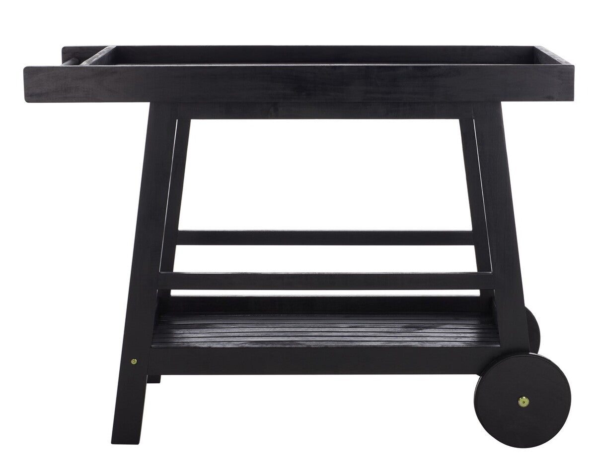Designed for the modern host, this Renzo Indoor/Outdoor Bar Cart makes entertaining a breeze. Styled in a jet black finish, Renzo’s eucalyptus wood makes it perfect for transporting cocktails and canapes from the kitchen to any outdoor oasis with strength and ease.