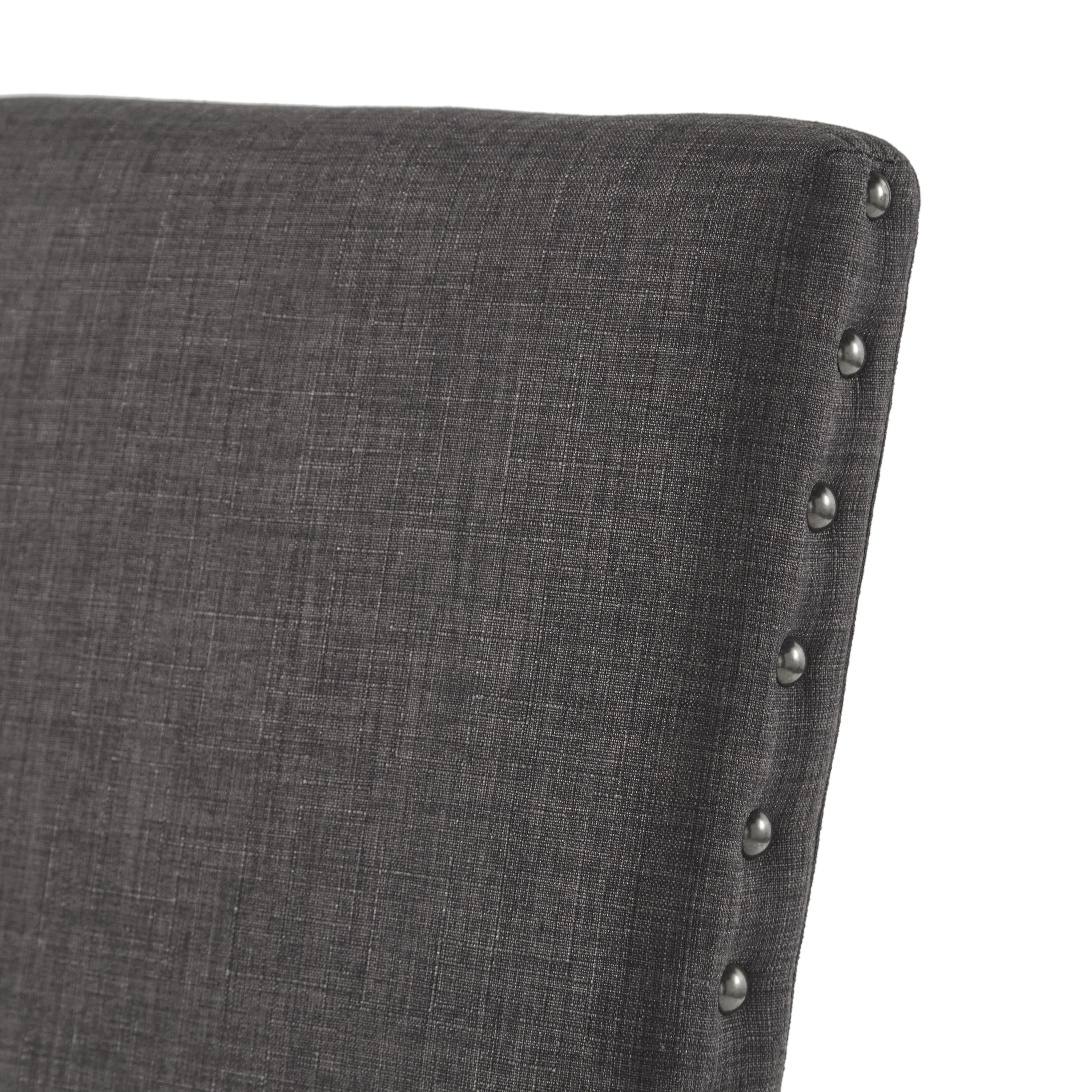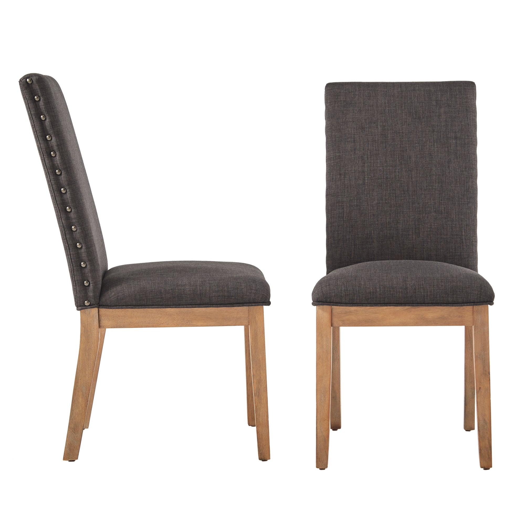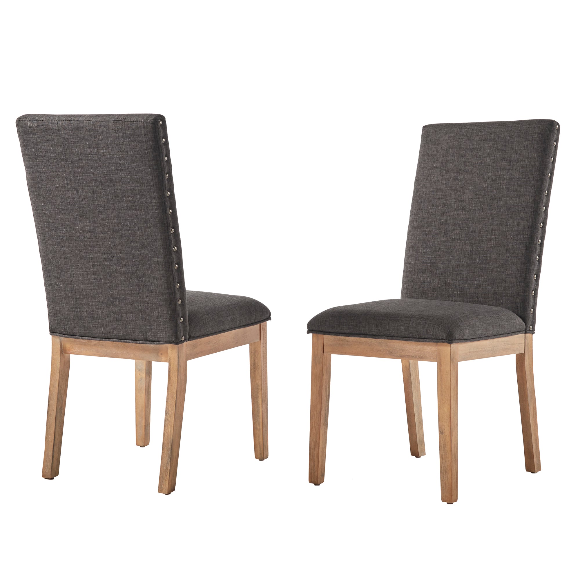 - Graphite finish nailhead tacks along chair back sides