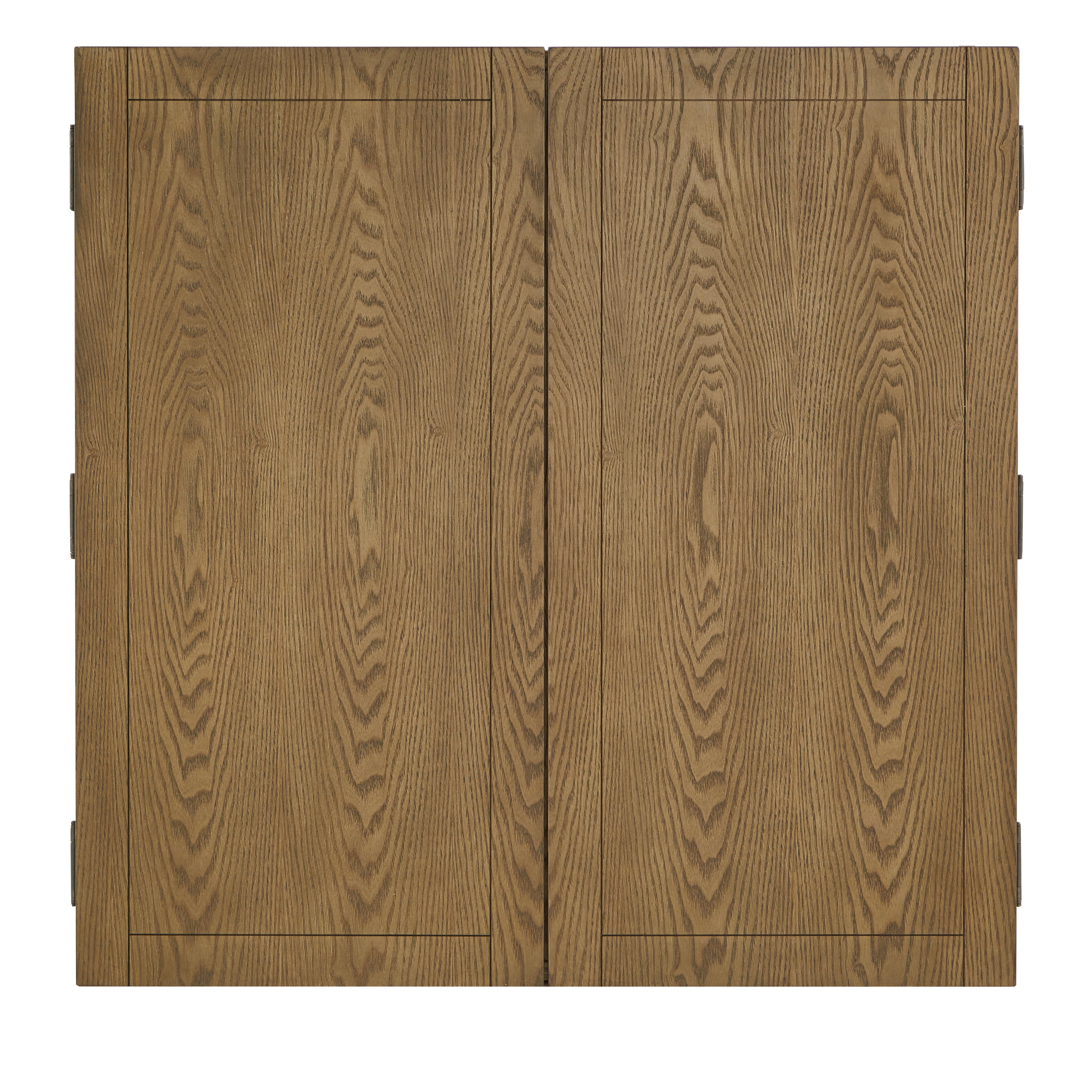- Warm brown wood finish