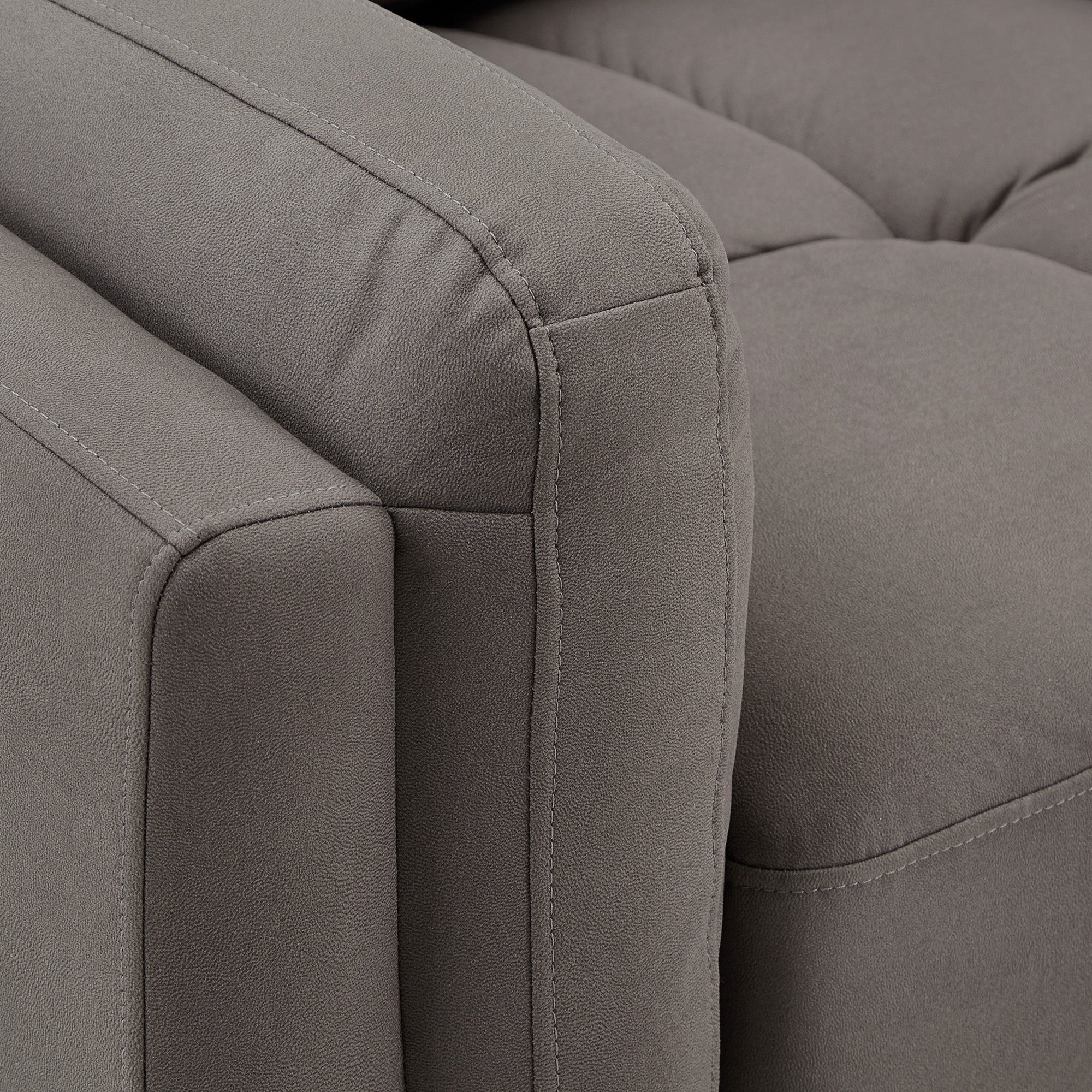 - Grey microfiber upholstery offers a versatile palette for your decorative preferences.
