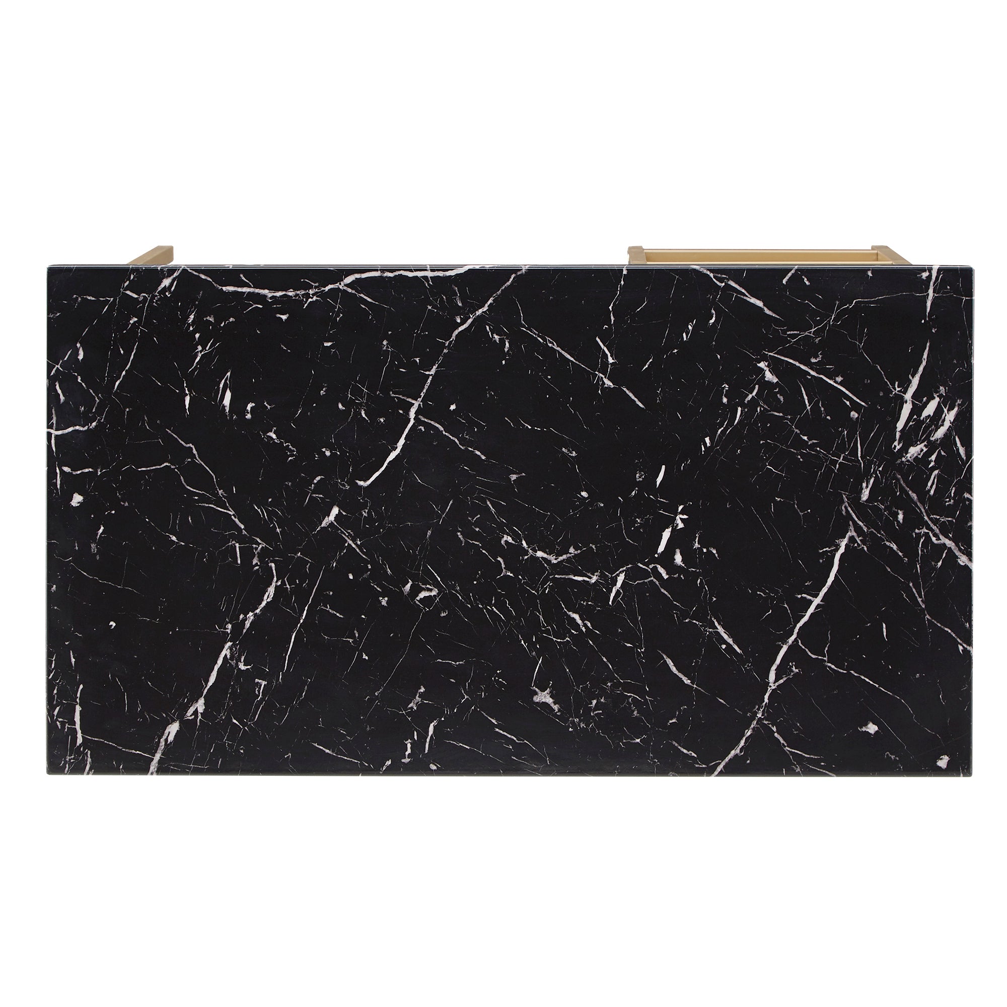 - Crafted with MDF, metal, faux marble top, polyurethane, and foam