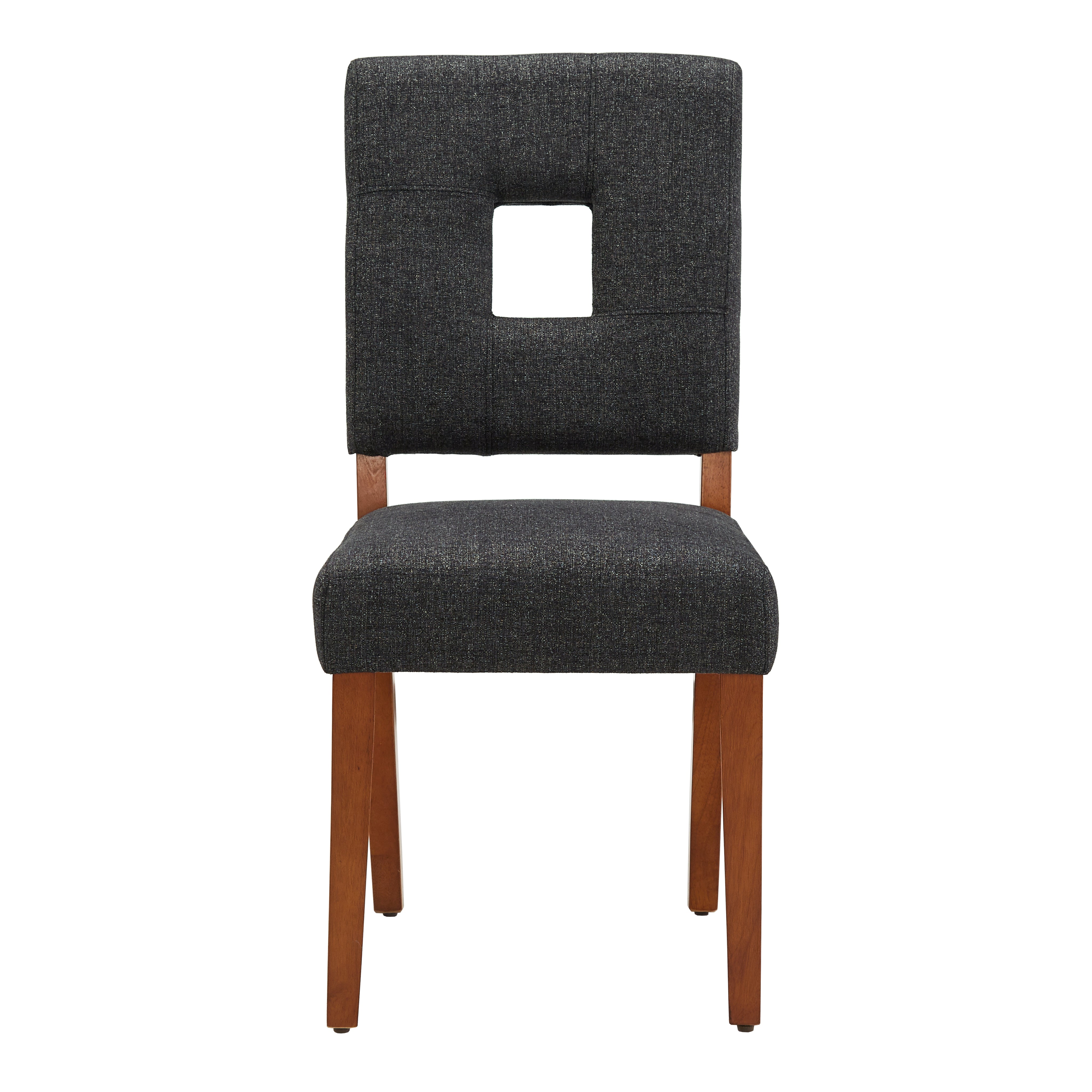 - Modern keyhole cutout on the chair back