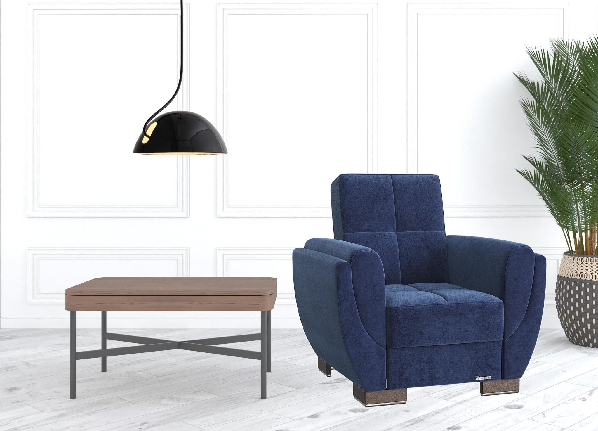 - Sturdy solid wood legs in a brown finish with tufted cushions for a touch of elegance.