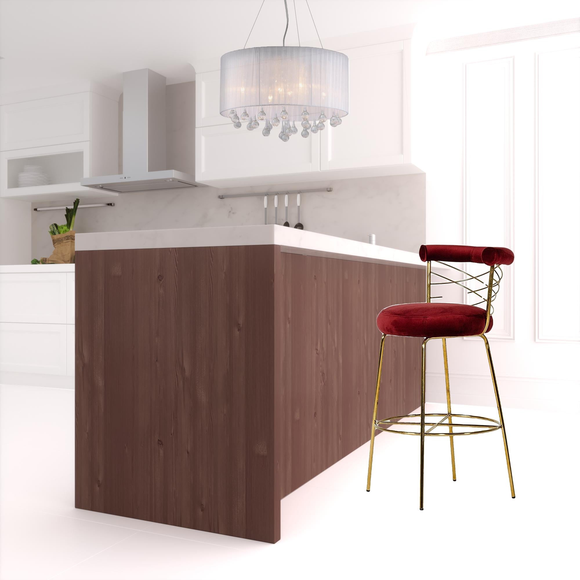 - Glam lux red polyester velvet and gold high top Bar Height Bar Stool.