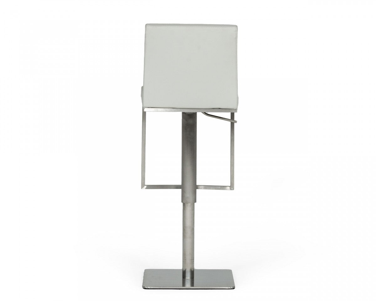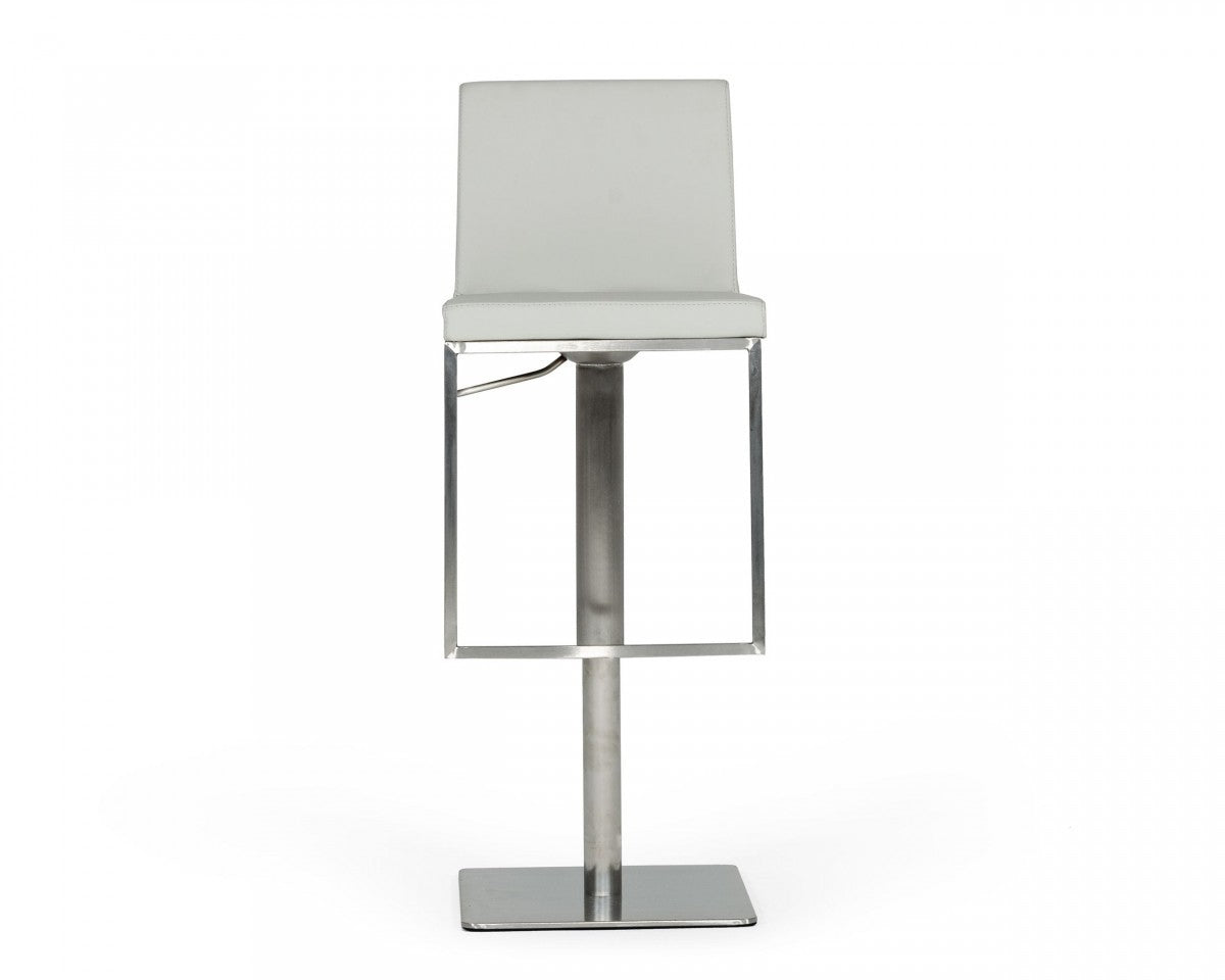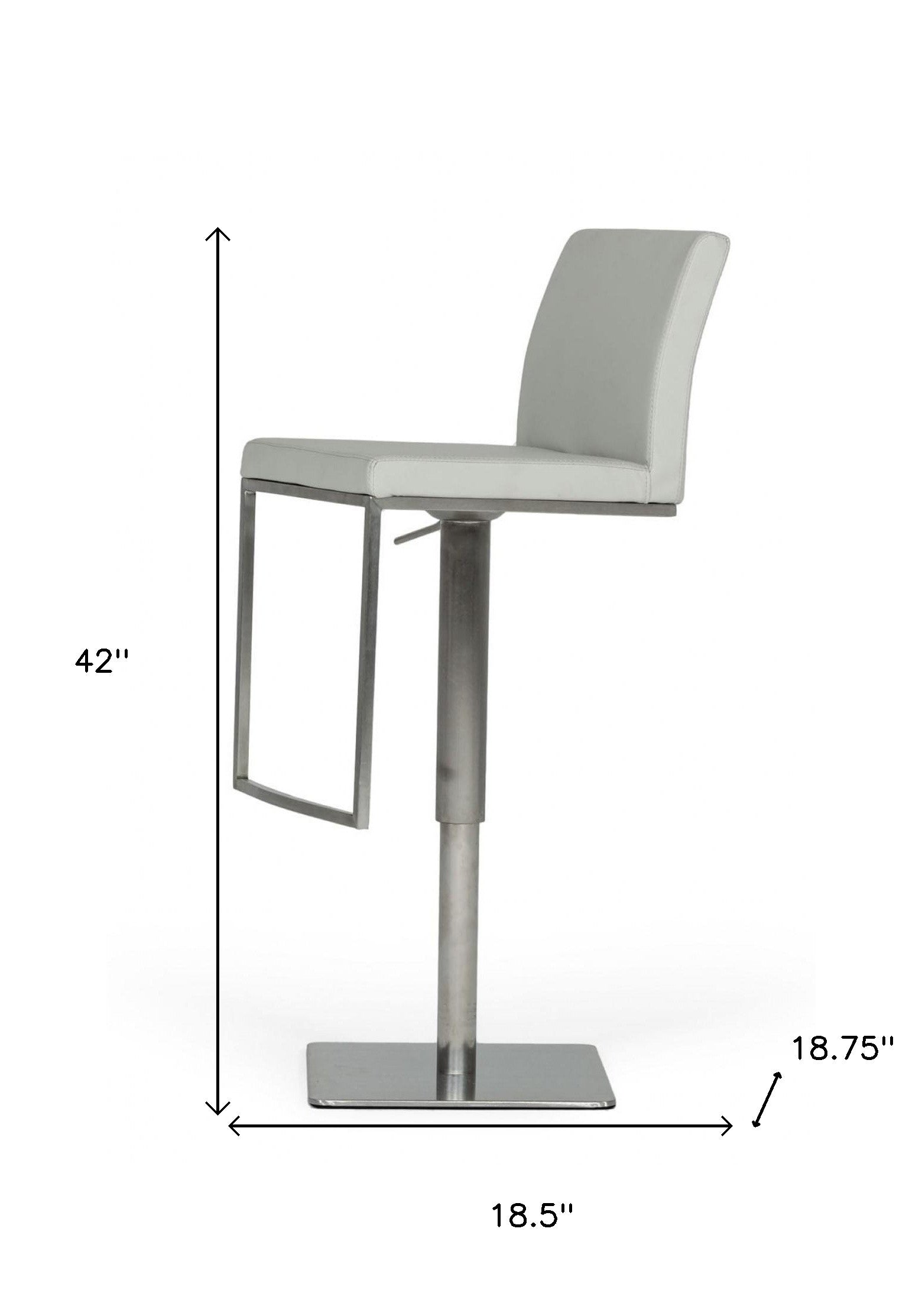 - Modern Gray Adjustable Height Swivel Bar Chair with a Chrome pedestal style base.
