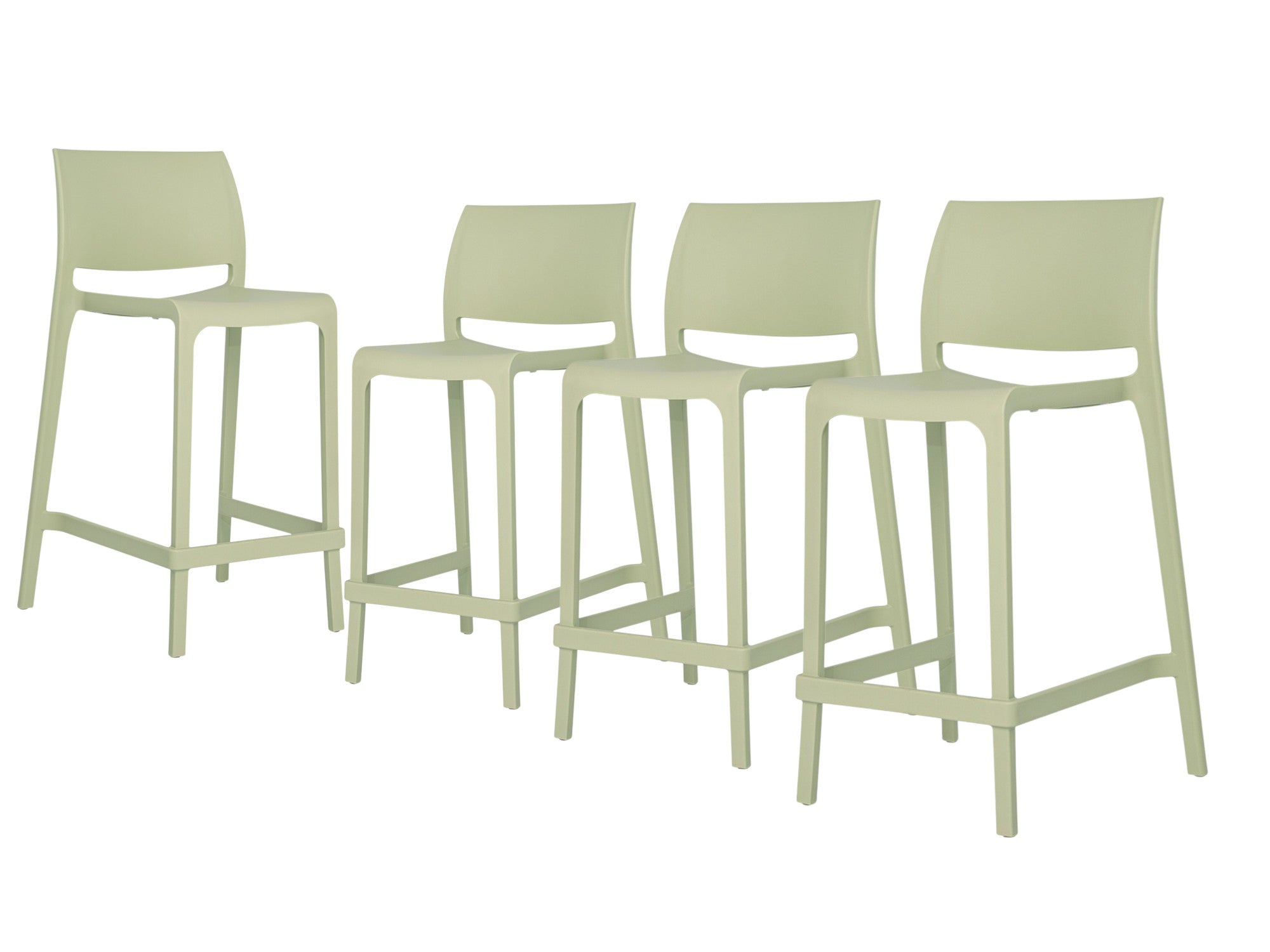 - Set of 4. Includes four weather resistant outdoor armless bar stools / chairs.