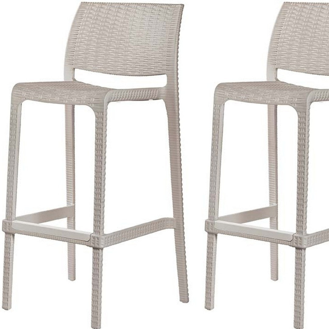 - Set of 4. Includes four weather resistant outdoor armless bar stools / chairs.