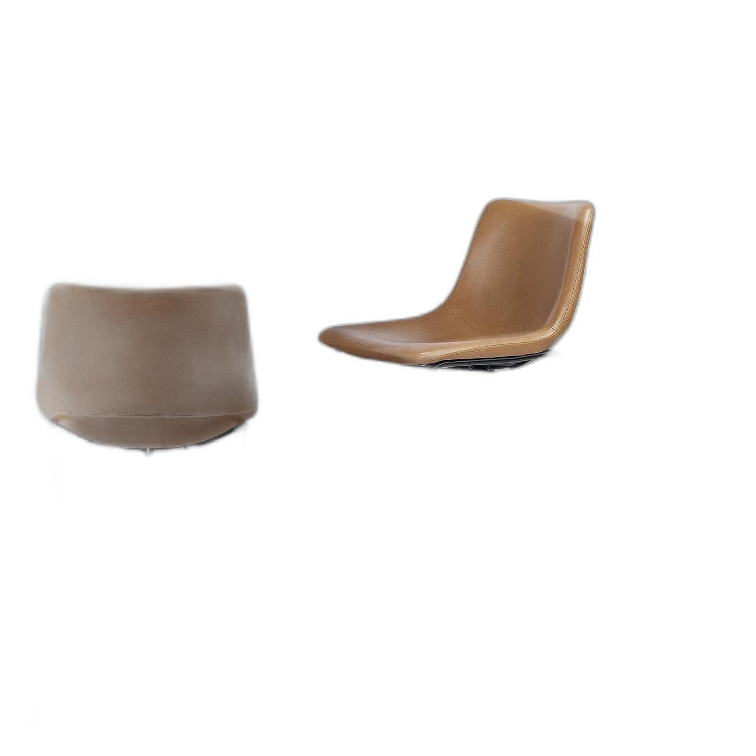 - Upholstered in a warm carmel whiskey brown faux leather that is soft and durable.
