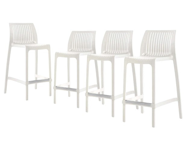 - Set of 4. Includes four weather resistant outdoor armless bar stools / chairs.