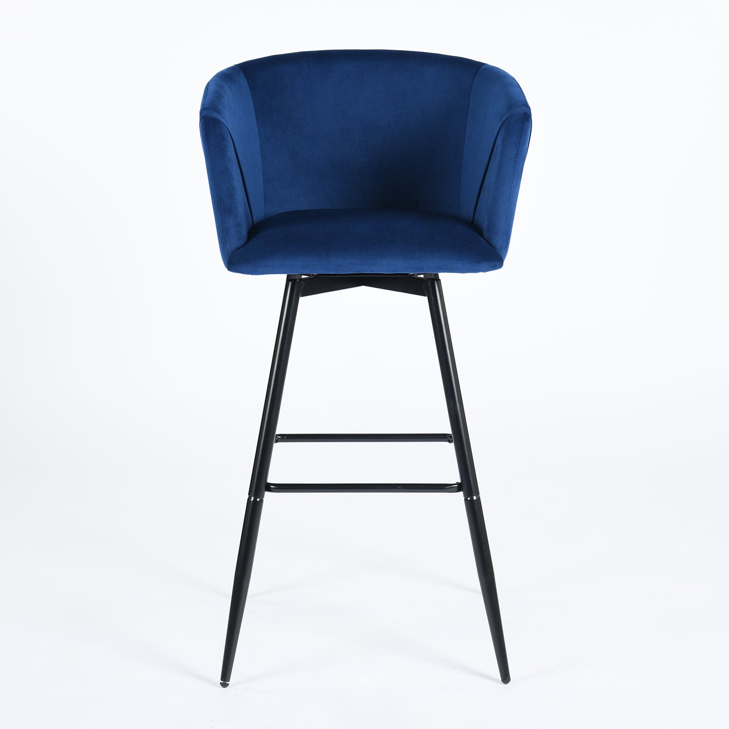 - Set of 2 Modern Curved Back Pale Pink Rose Velvet and Black Bar Chairs