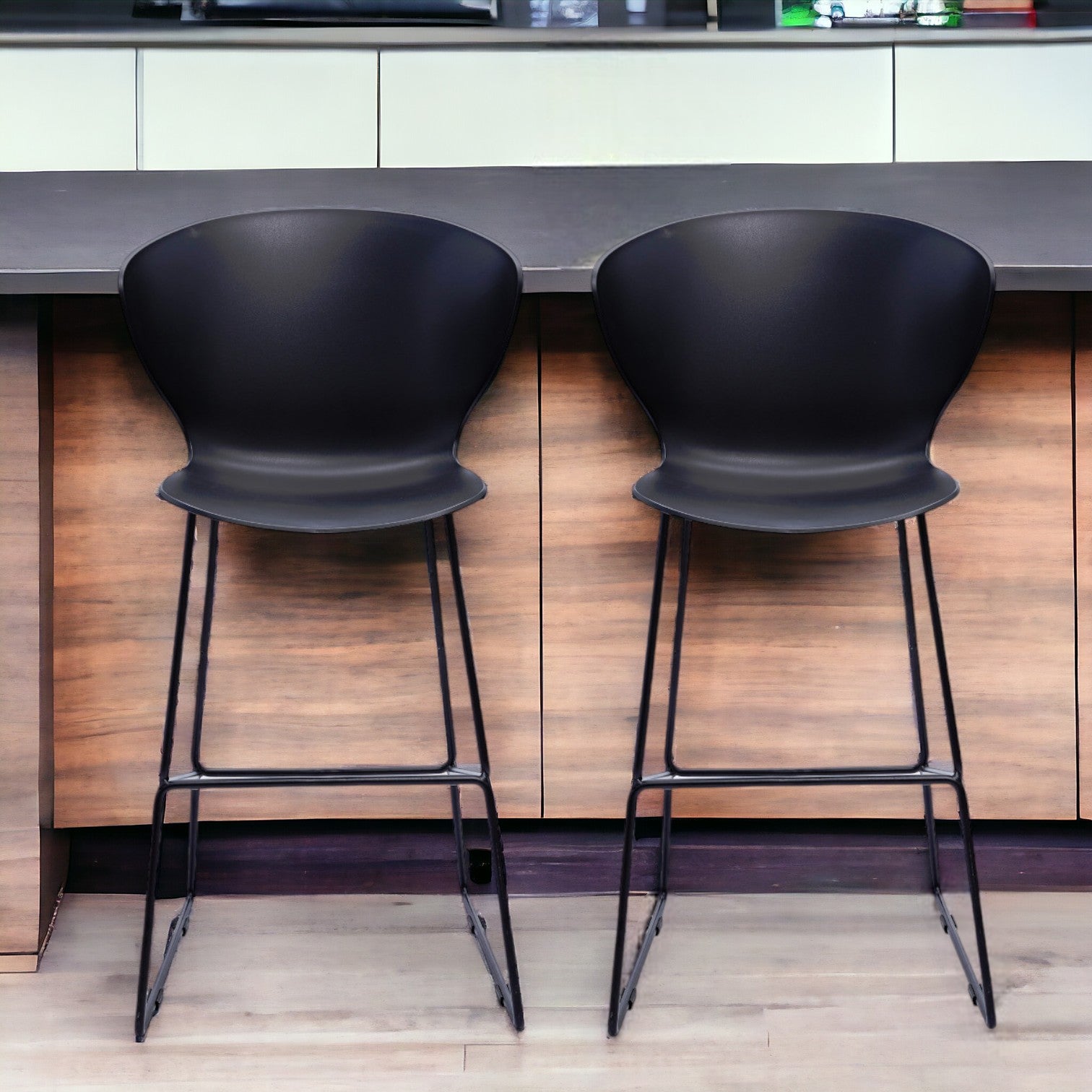 - Modern and sleek high end premium plastic and metal monotone bar height bar chairs.