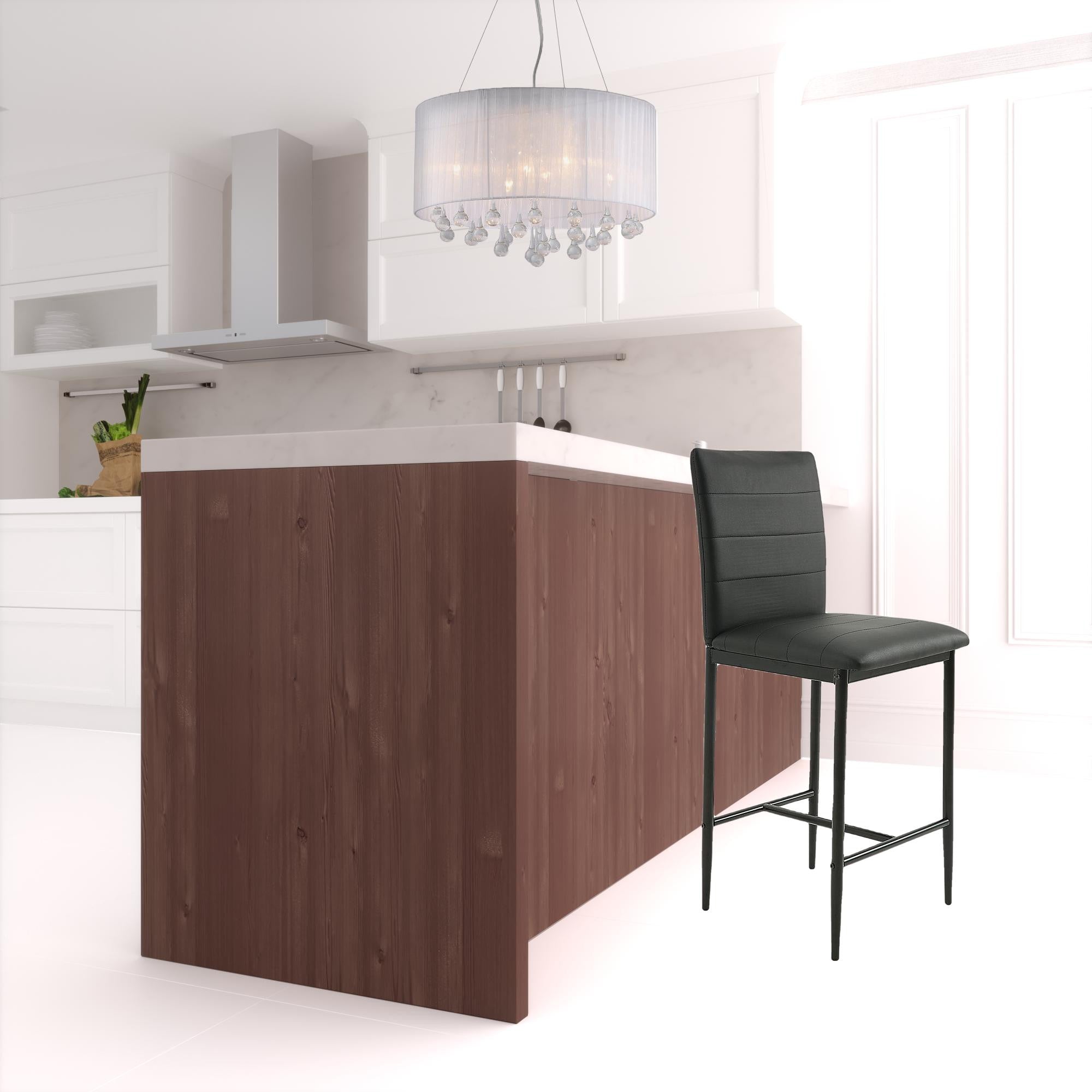 - A sleek black monotone color gives this steel and fabric stool a fresh and updated look.