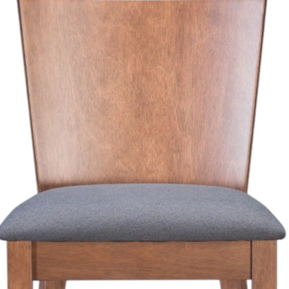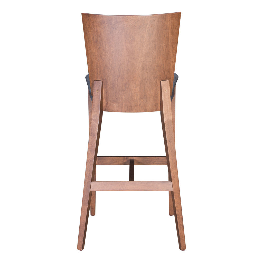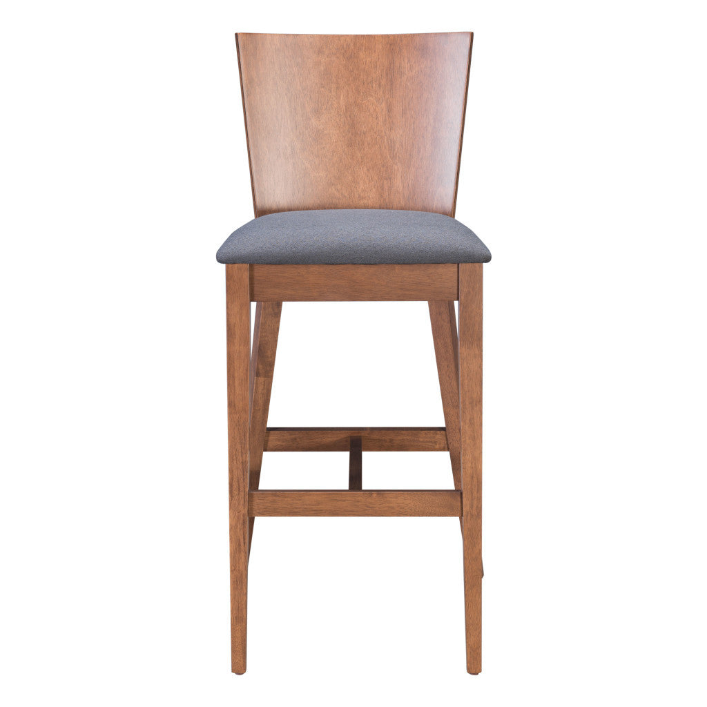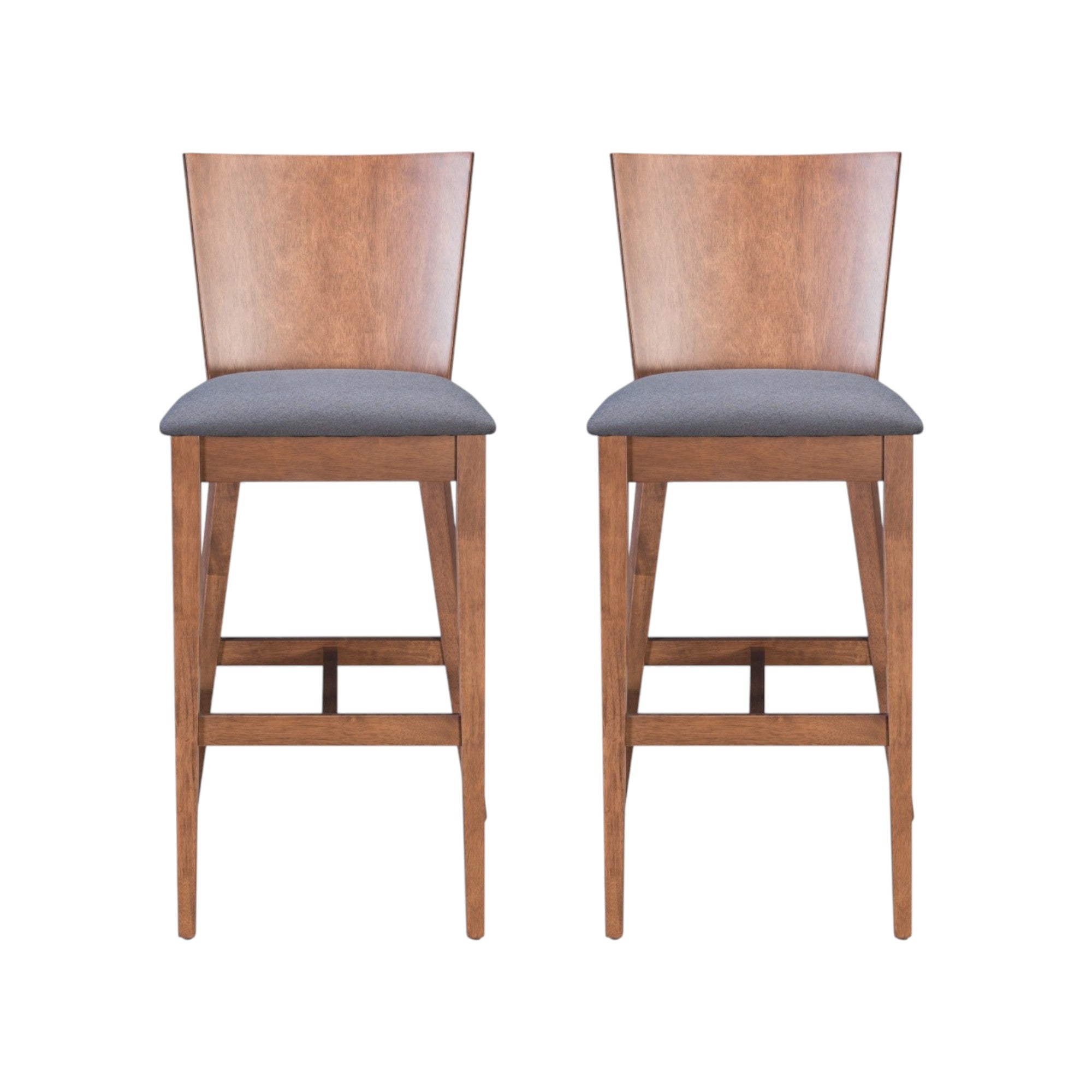 - Set of 2 Walnut Brown and Gray Upholstered Bar Chairs.