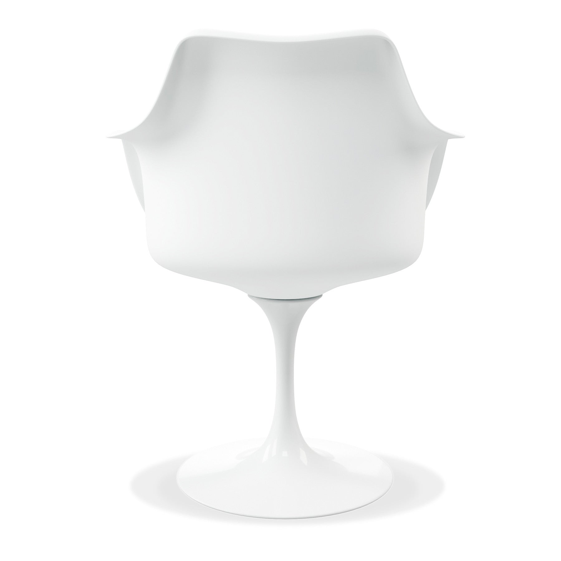 - Mid-century inspired shiny lacquer finish pedestal style dining arm chair with seat cushion.