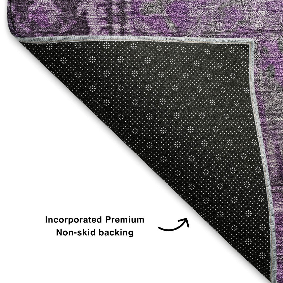 Bring timeless elegance and practical performance to larger living spaces with this eggplant-and-gray oriental area rug. Designed for busy households, it combines classic styling with modern durability—offering stain resistance, UV protection, and easy-care construction to keep your floors beautiful in rooms with kids, pets, or lots of sunlight.