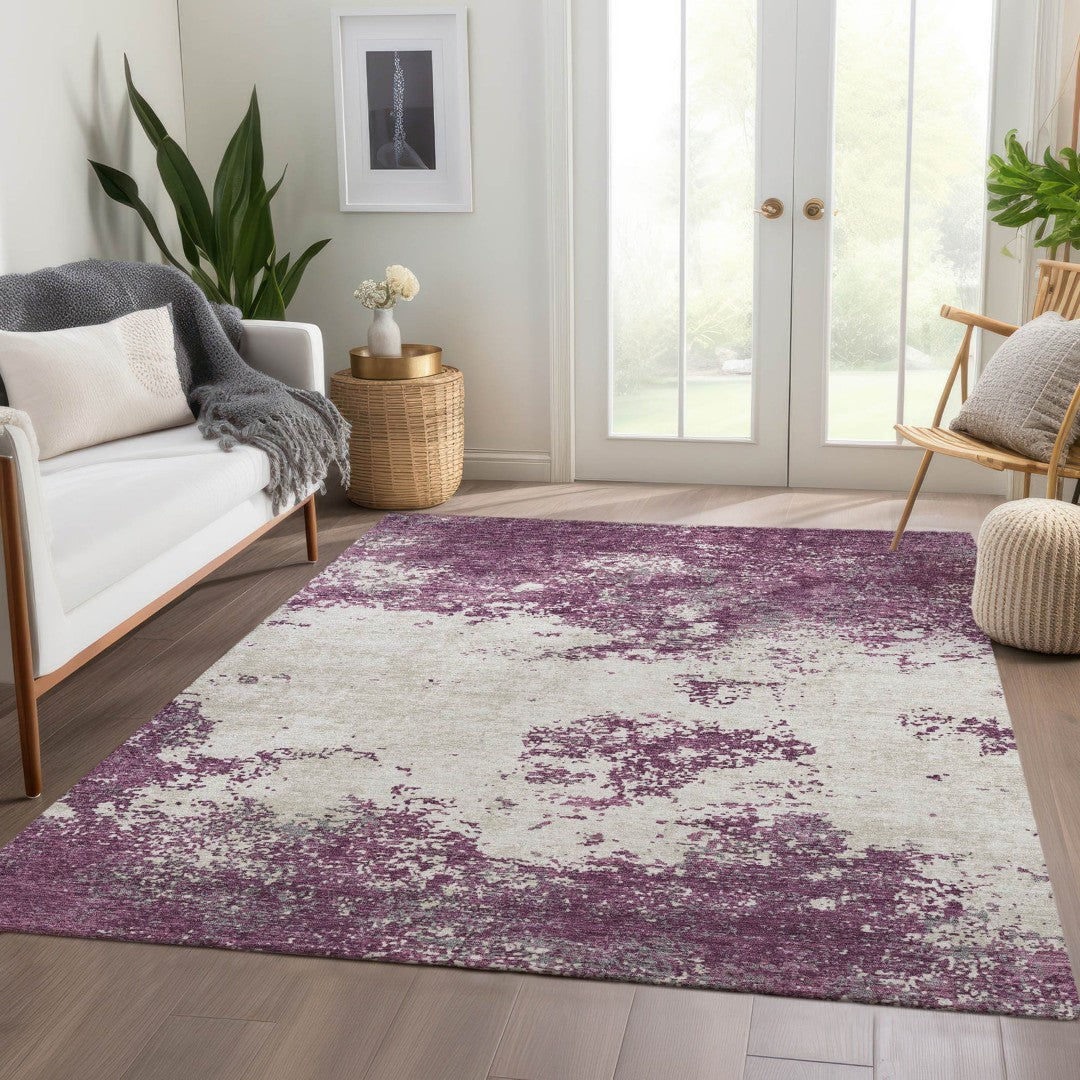 Bring effortless style and practical performance to larger living spaces with this eggplant-and-ivory abstract area rug. Designed for homes with an active lifestyle, the rug pairs a modern, painterly motif with durable, easy-care construction—making it equally at home in family rooms, playrooms, and high-traffic entertaining areas. Its generous size creates an instant focal point while helping to warm the room, reduce noise, and conceal floor imperfections.