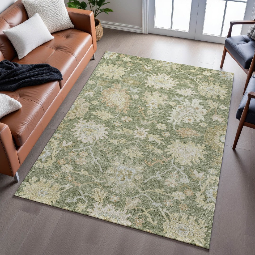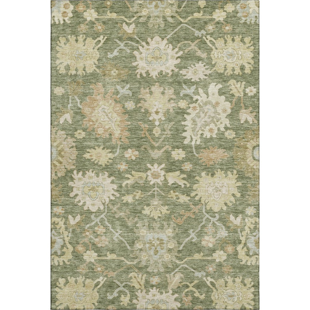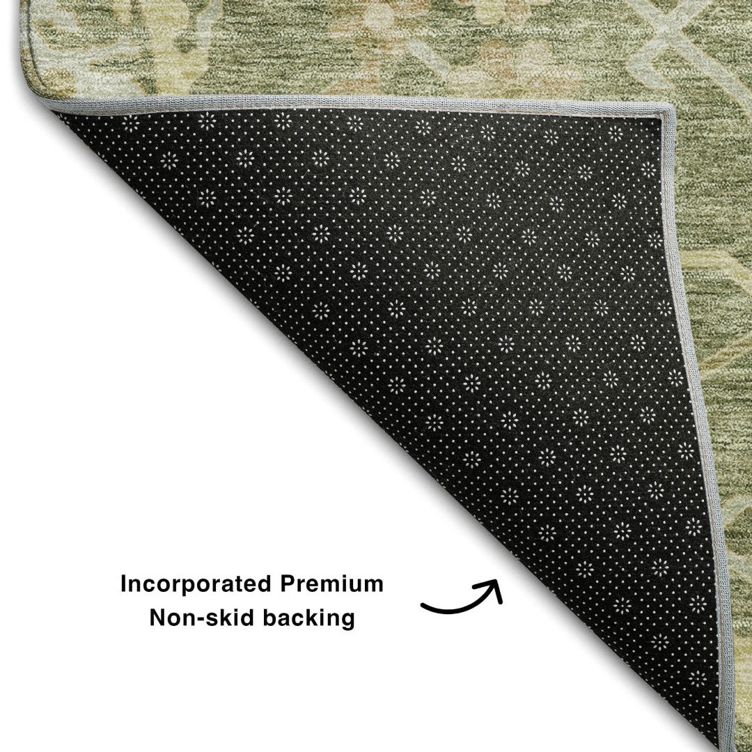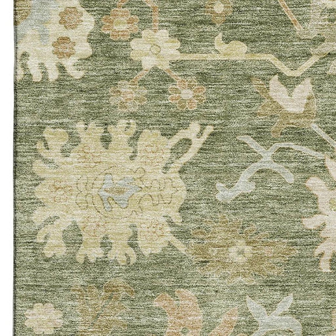 - Design & Color: Traditional floral medallion pattern in artichoke green, beige, and copper tones for a warm, layered look.