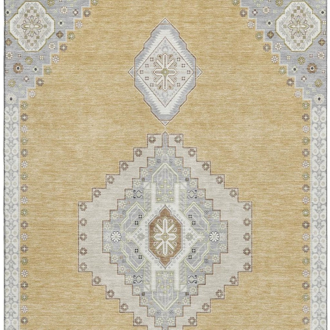 Bring timeless elegance and practical performance to larger living spaces with this gold, ivory, and gray oriental area rug. Designed for busy households, it pairs traditional styling with modern durability—offering stain resistance, UV protection, and easy-care polyester construction so the rug stays beautiful even with kids, pets, and frequent use.