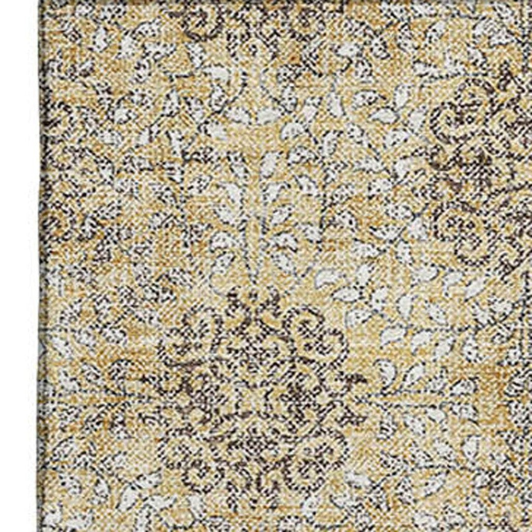 Bring timeless elegance and practical performance to larger living spaces with this gold and taupe damask area rug. Designed for busy homes, its durable polyester construction combines stain resistance, UV protection, and an easy-care washable finish to keep your floors looking fresh while adding a warm, transitional focal point.