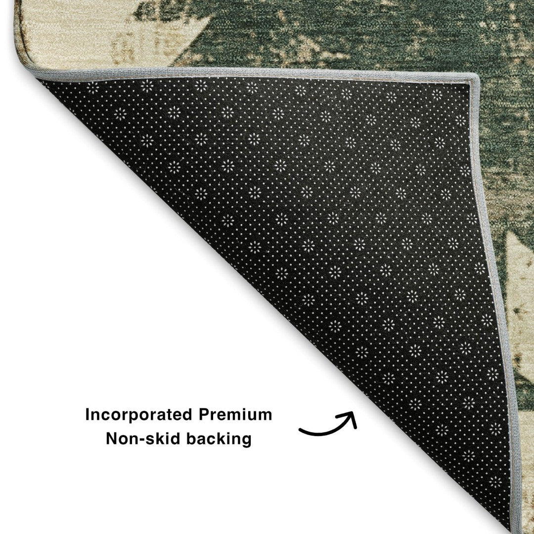 - A non-slip felt backing covers this rug to finish the look, keep the fibers in place, and help to keep the rug from moving.