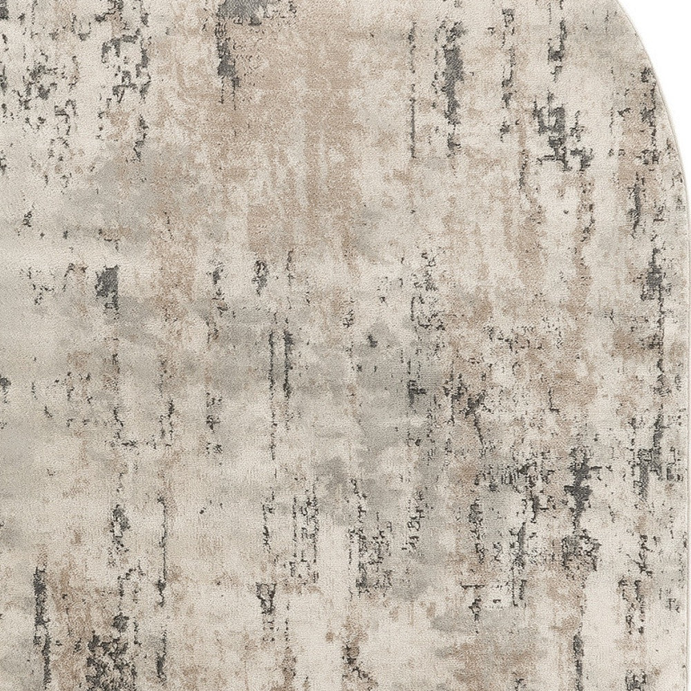 - Modern style area rug in a beige and gray color scheme crafted from a polypropylene and polyester blend.