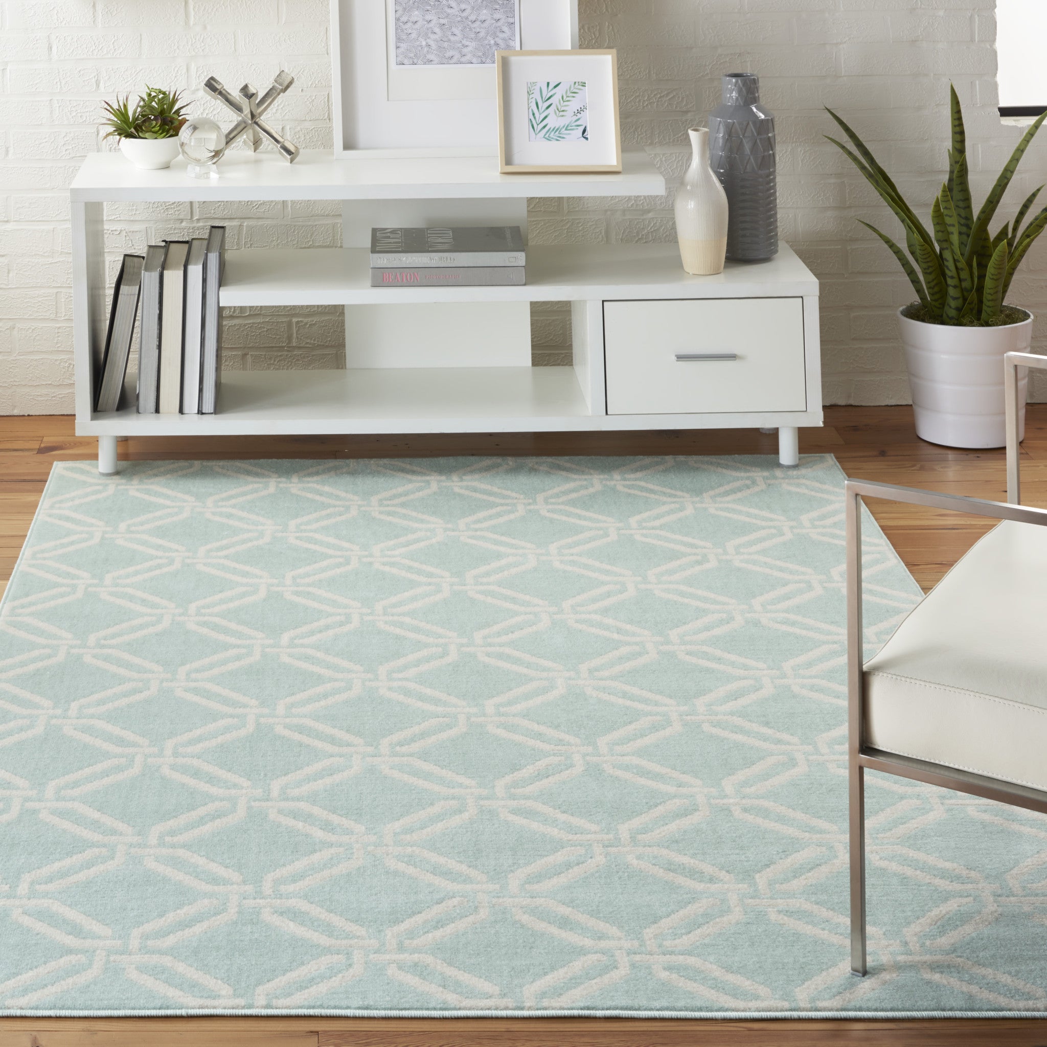 - A latex backing covers this rug to finish the look, keep the fibers in place, and help to keep the rug from slipping.