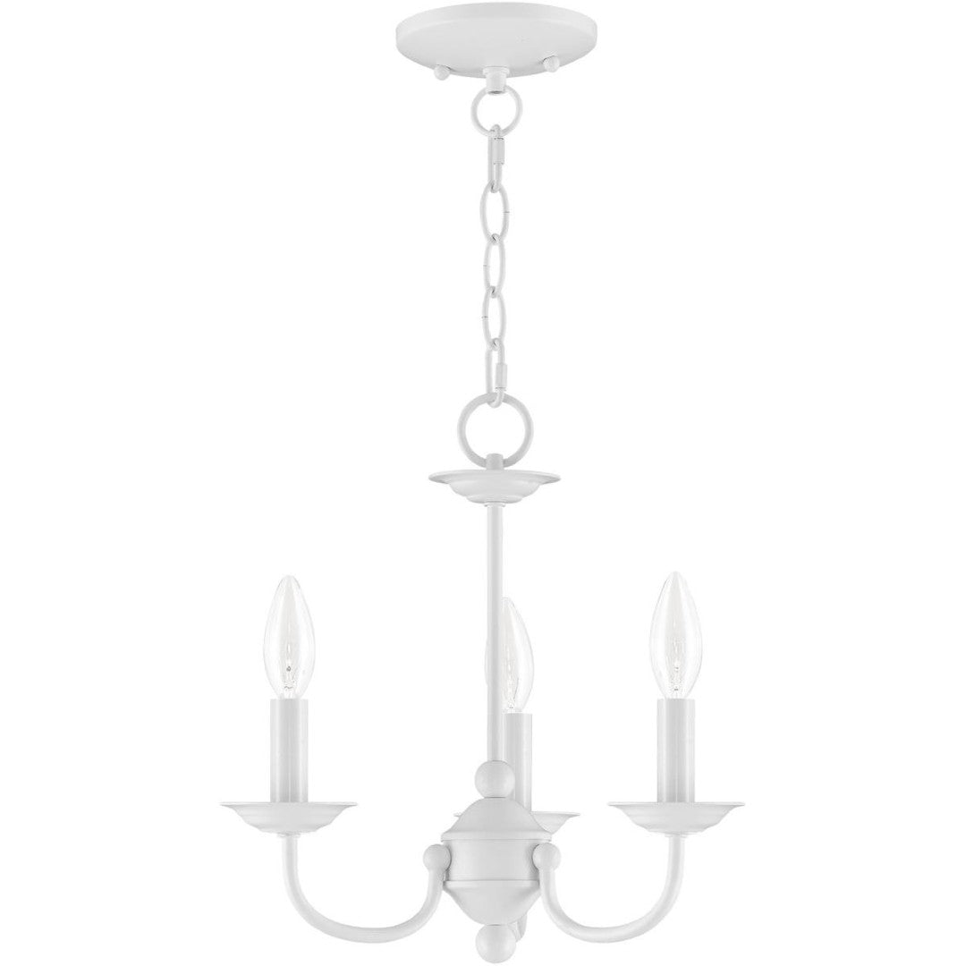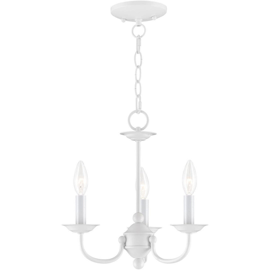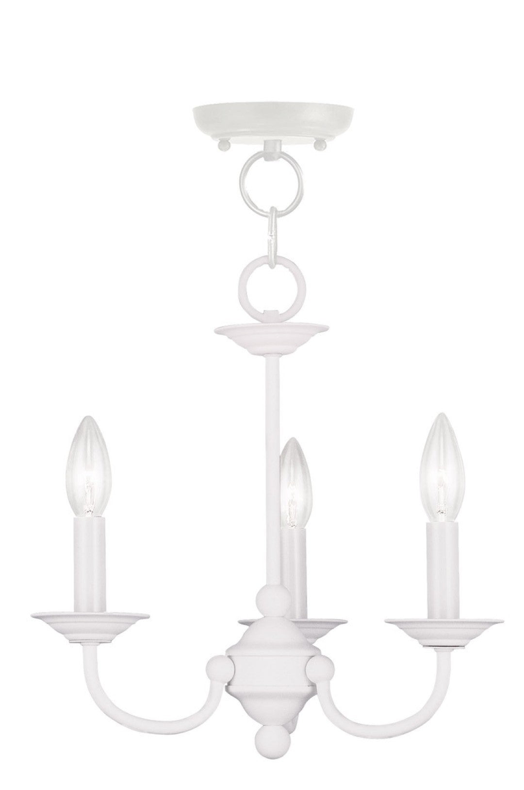 - Configuration: Three-light chandelier with three matching white cylindrical shades