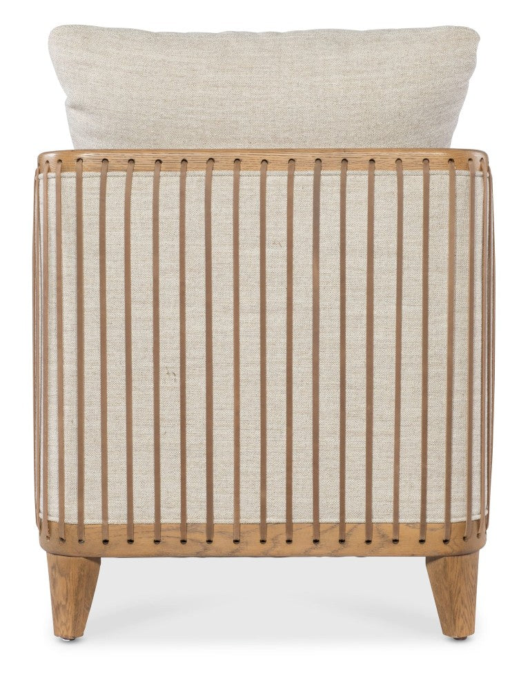 Effortlessly blending comfort with a calm, nature-inspired aesthetic, this stationary chair brings a refined biophilic touch to modern living rooms. With its decorative oak frame in a warm Cashew finish and durable Classic Linen performance upholstery, the chair is crafted for everyday use while maintaining a sculptural, transitional look that complements both contemporary and organic interiors.
