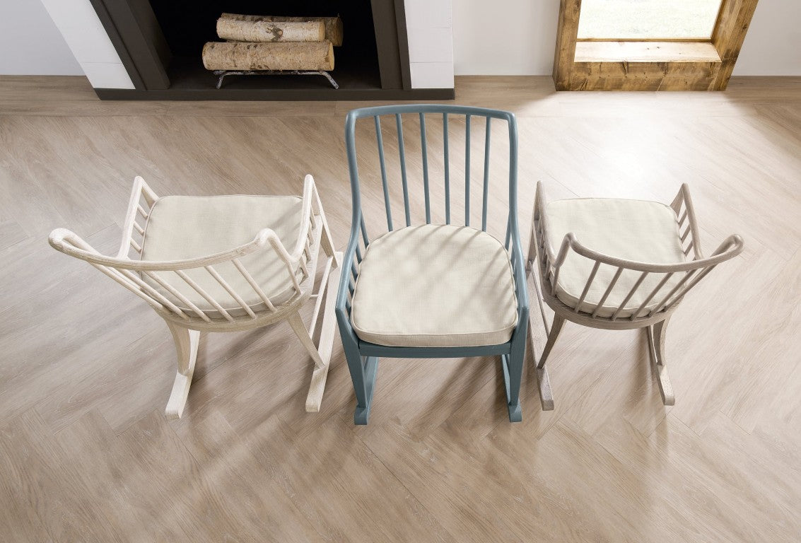 Bring relaxed, coastal-inspired comfort into your sunroom, nursery, or family room with the Serenity Moorings Rocking Chair. Thoughtfully designed for everyday use, the chair combines vintage charm with durable, performance-oriented materials to create a cozy spot for reading, rocking a child to sleep, or simply unwinding. Its brush-textured Seaspray blue finish and spindle back deliver classic cottage styling while a plush loose seat cushion in Oyster performance fabric ensures long-lasting comfort and easy care.