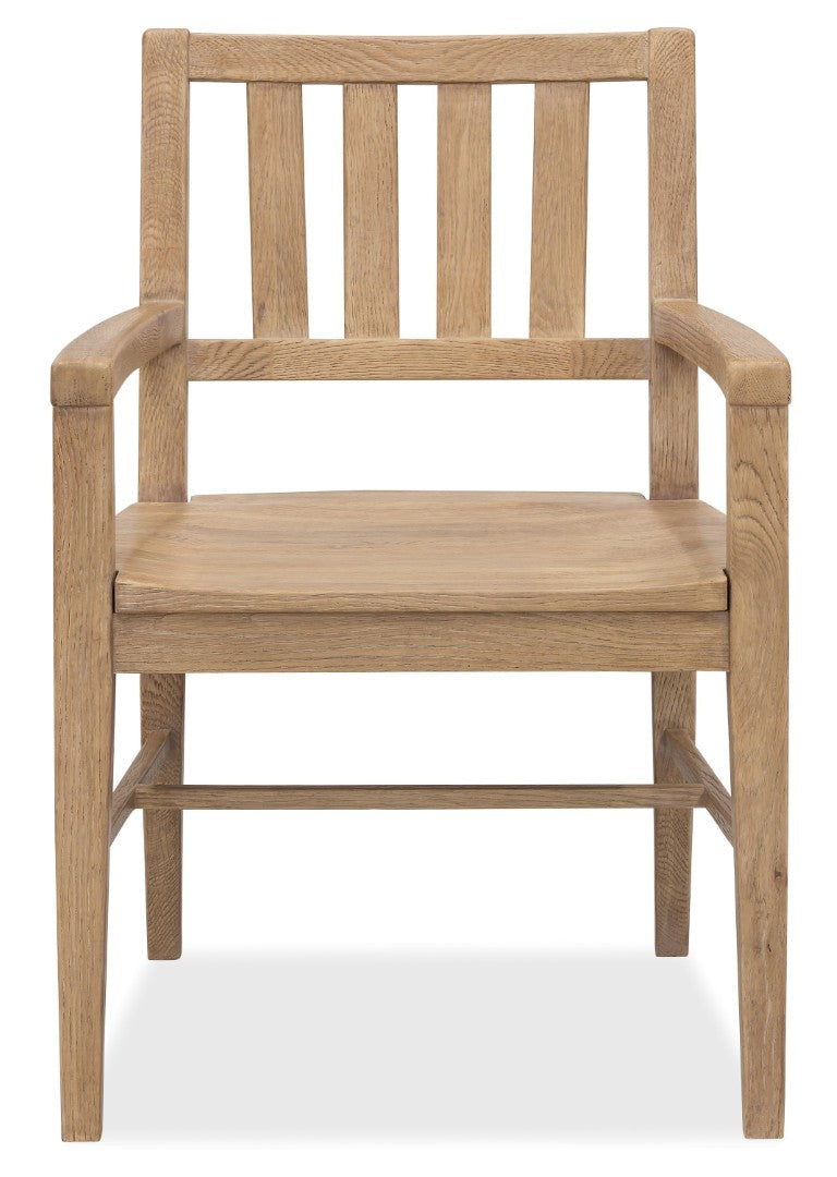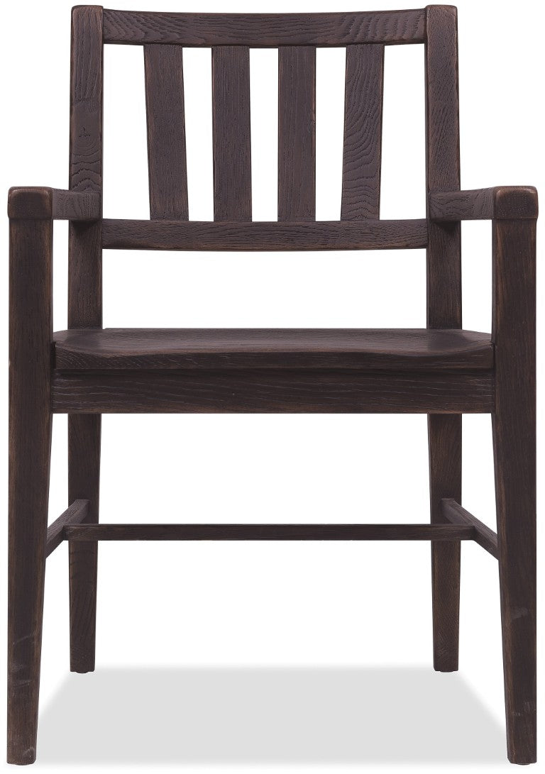Bring farmhouse warmth and enduring craftsmanship to your dining area with this Driftwood Splatback Arm Chair. Its slat-back silhouette and rich Buckboard finish evoke weathered oak charm, while solid oak construction and a sturdy wood seat deliver reliable comfort and long-lasting use — ideal for casual family meals or relaxed entertaining.