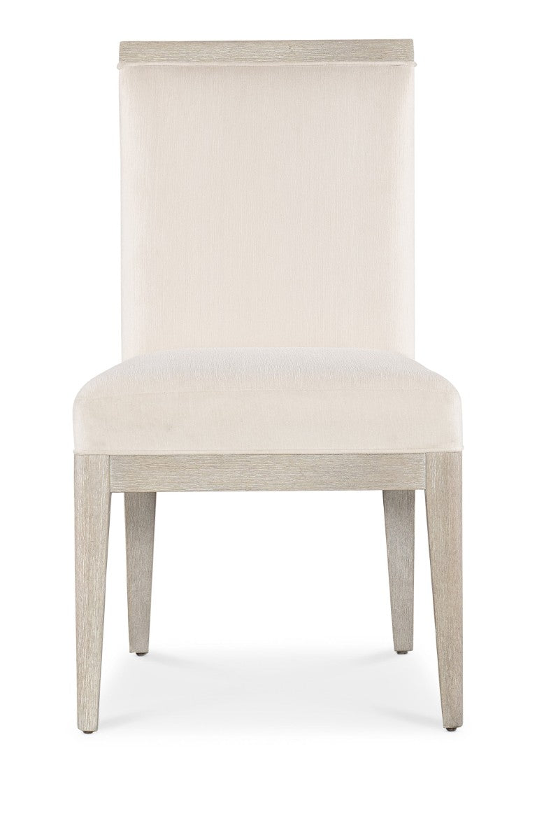 Cozy elegance meets clean modern design in this versatile upholstered side chair. Thoughtfully crafted details—like wire-brushed quartered oak trim and a softly textured Cottony Cotton upholstery—create a refined yet relaxed look that suits dining rooms, home offices, or accent seating areas. The chair balances comfort and contemporary style with a supportive upholstered back and seat and sturdy wood base.