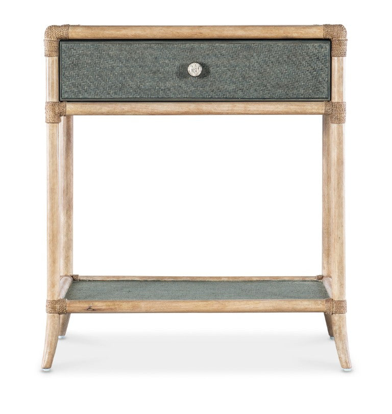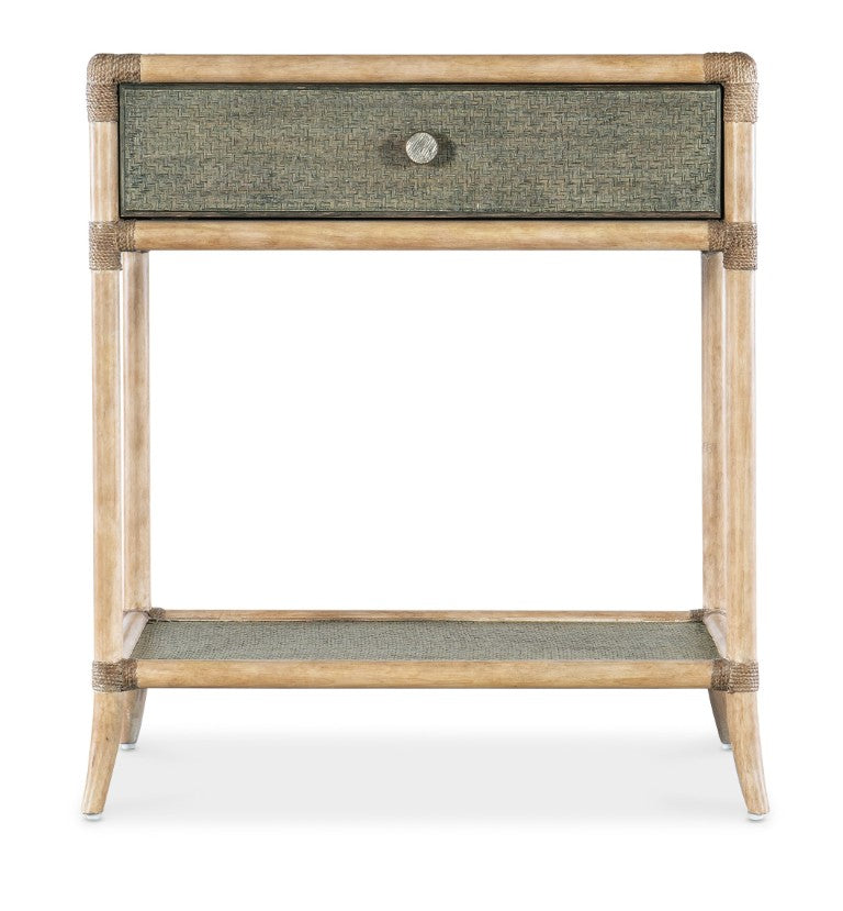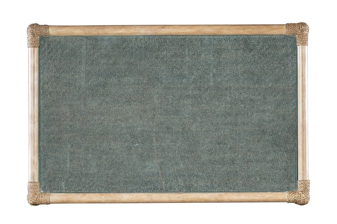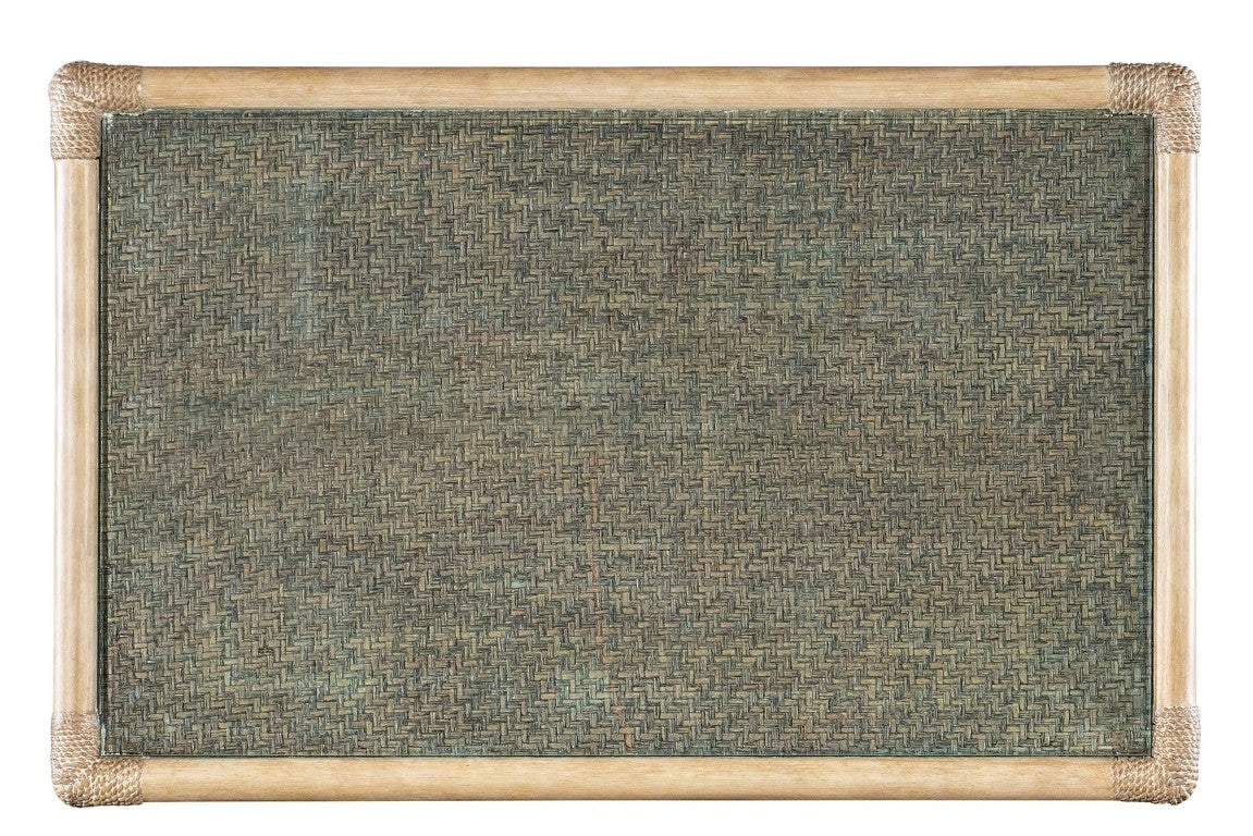 - Finish: Sand-colored Dune frame and legs with Seagrass accent green painted raffia on the top and shelf