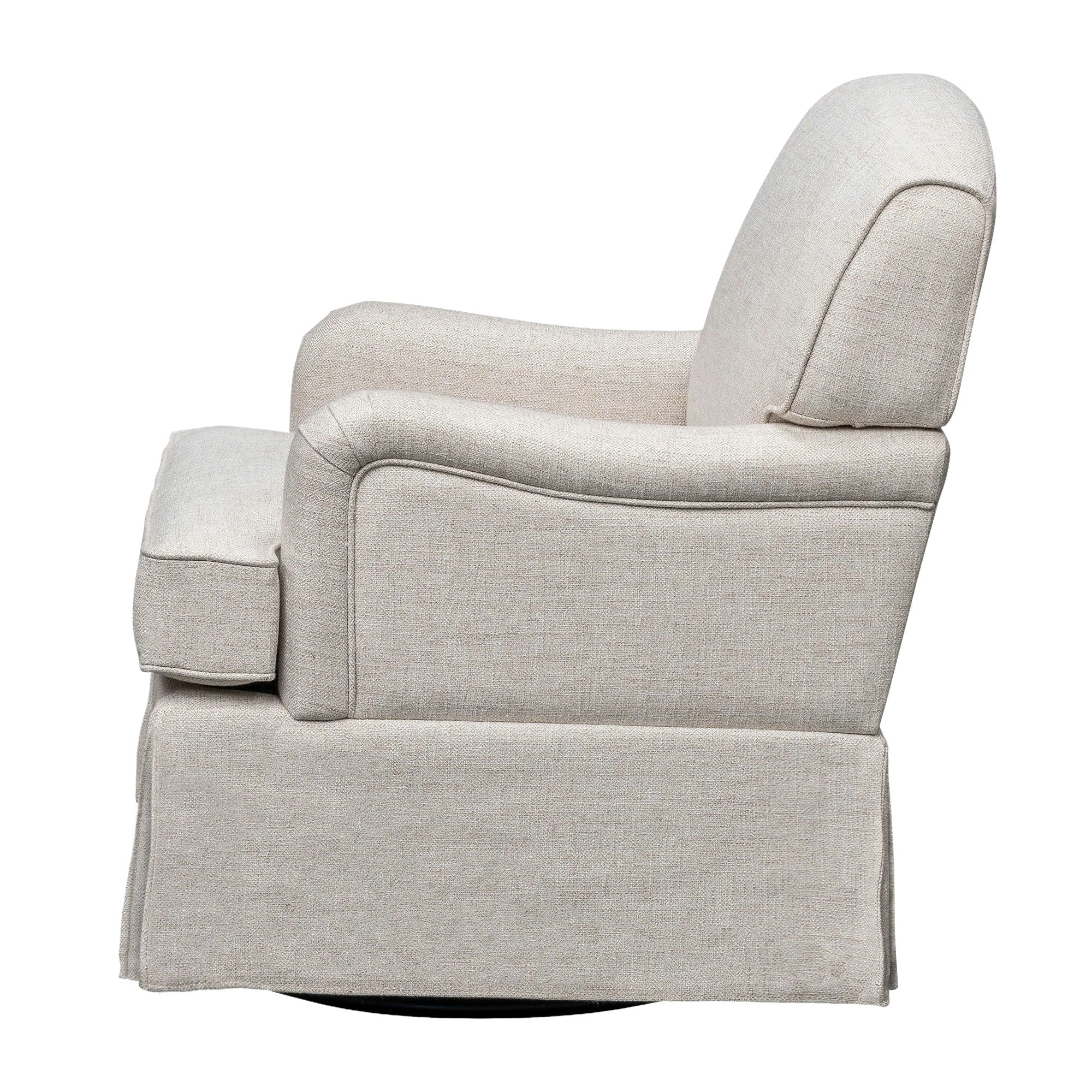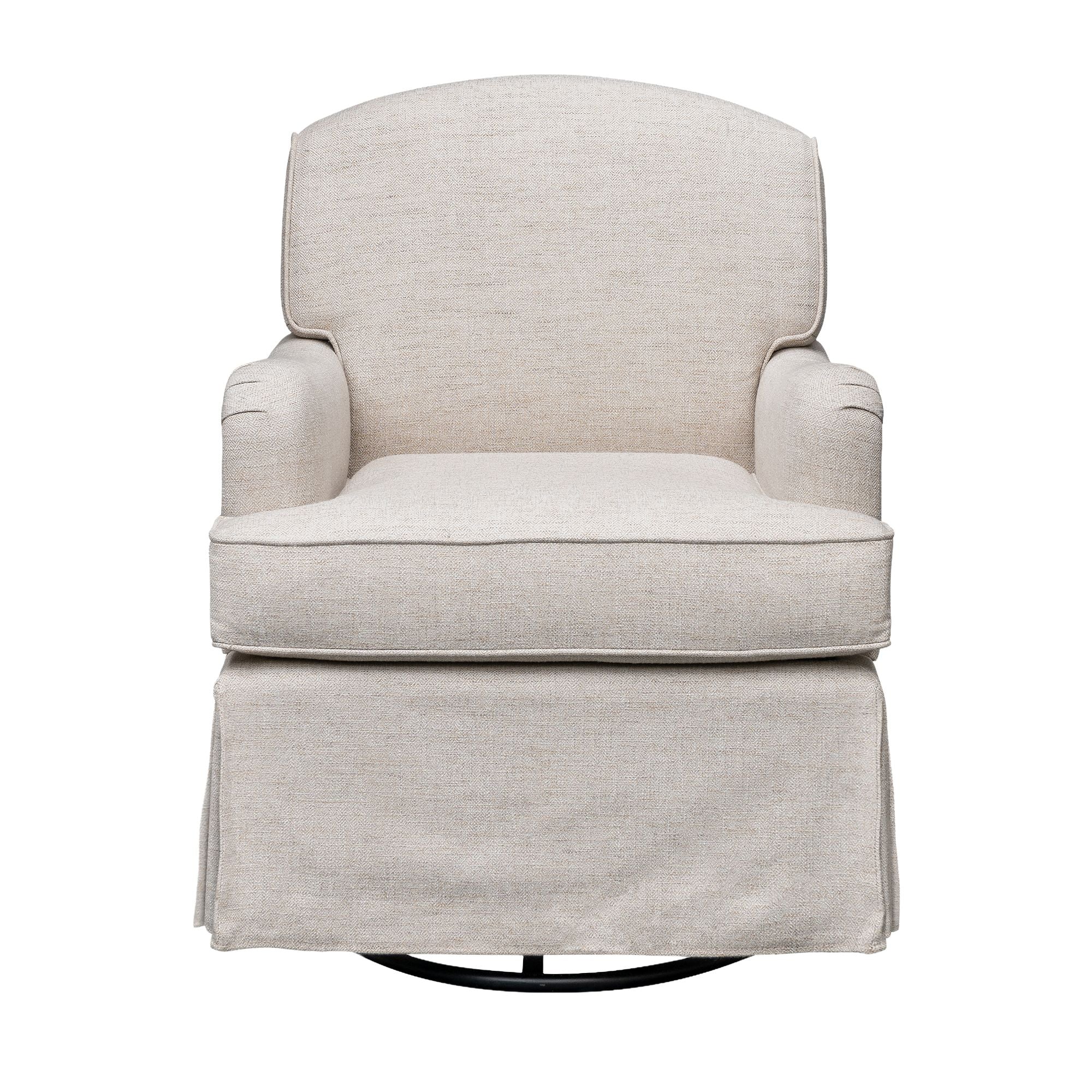 Comfort and classic style come together in this elegant swivel glider chair from the Martha Stewart Bedford Collection — designed to provide quiet, smooth motion and lasting comfort in nurseries, living rooms, or reading nooks. The Melody chair pairs a refined jacquard upholstery pattern with durable construction and supportive seating for everyday use.