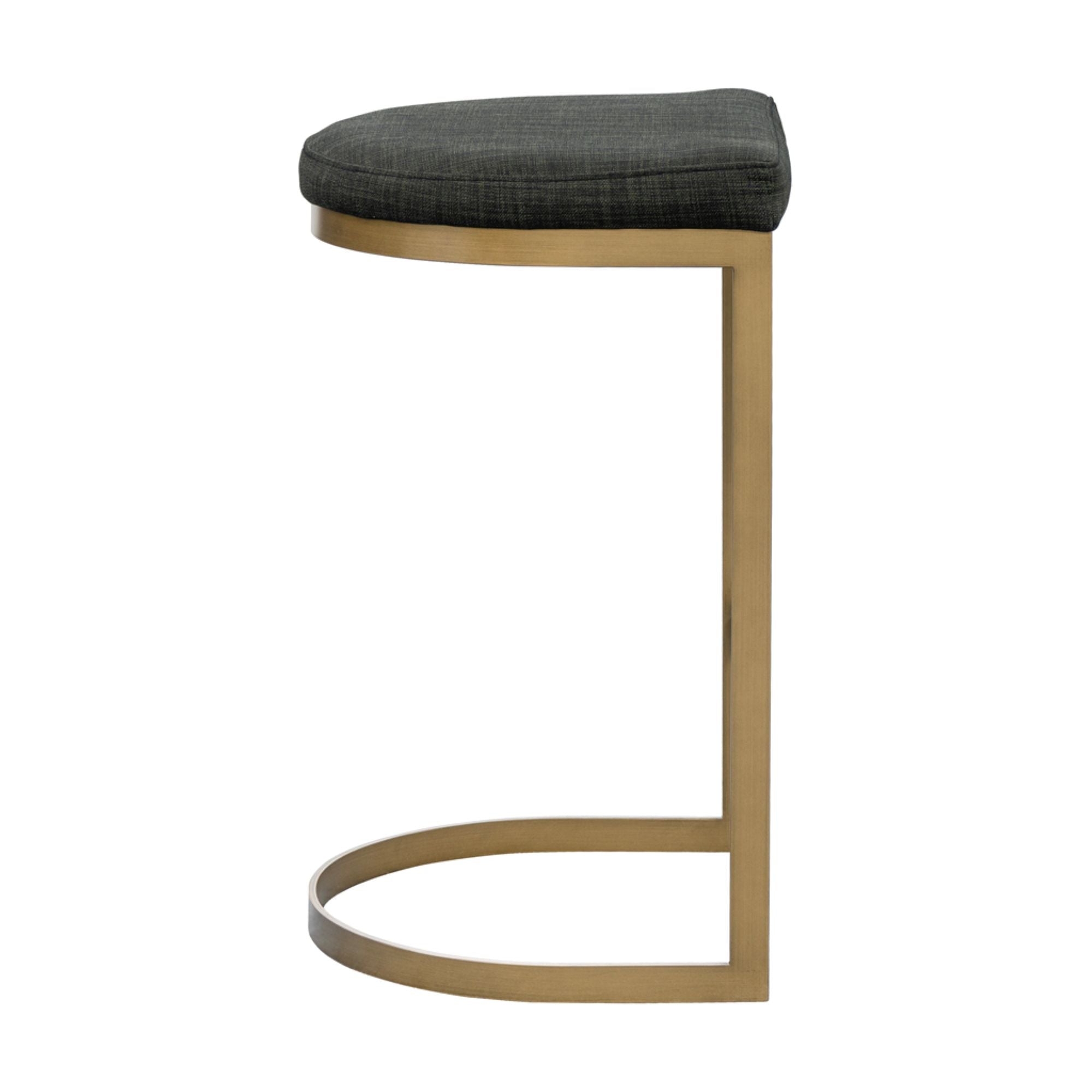 Bring contemporary sophistication to your kitchen or dining area with this striking backless counter stool. The charcoal upholstered seat paired with an antique gold metal base creates a modern, high-contrast look that complements minimalist and eclectic interiors alike. Fully assembled for immediate use, this stool balances style and practicality for everyday dining or entertaining.