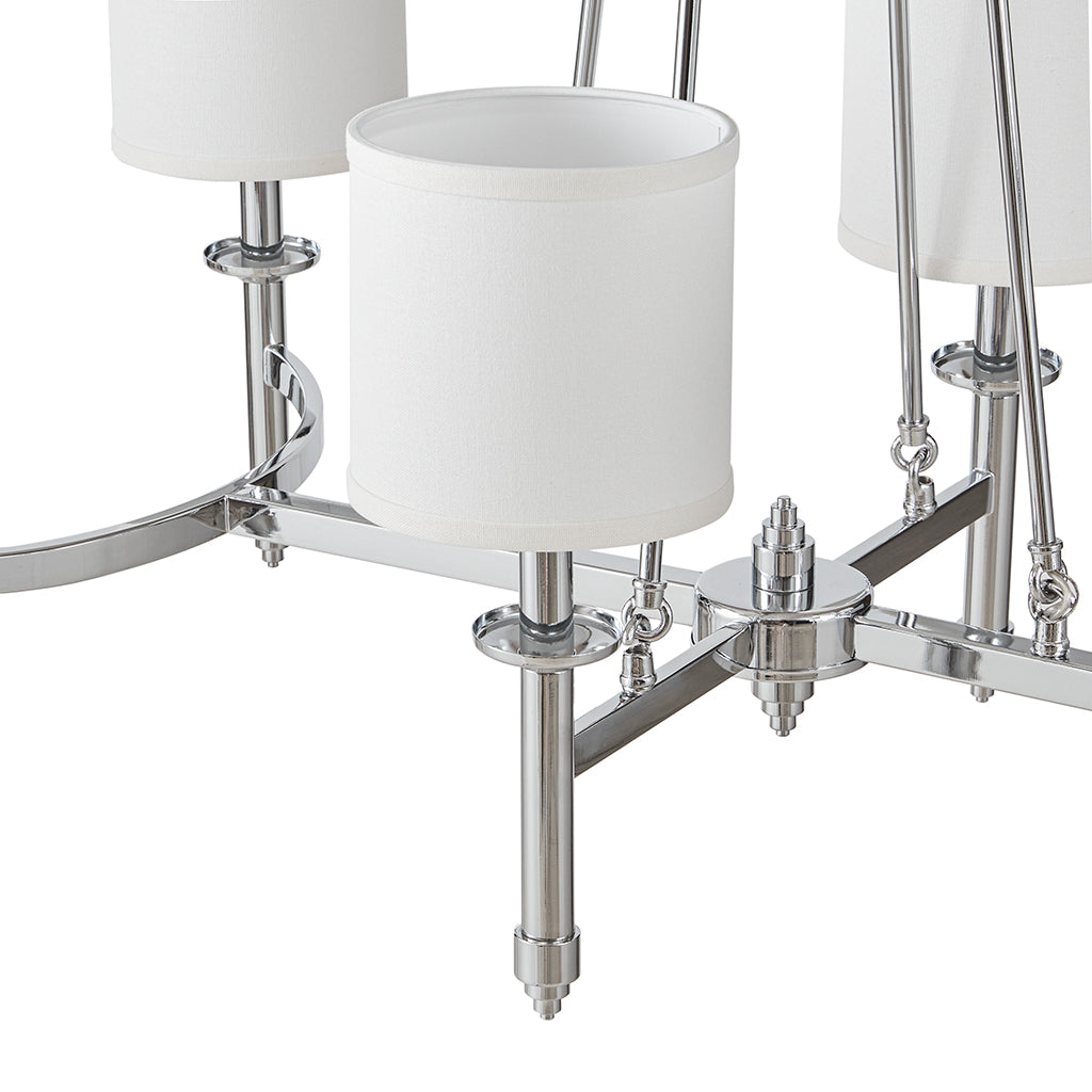 - Shades: Six white cylindrical fabric drum shades provide soft, diffused light for a warm, inviting atmosphere (bulbs not included).