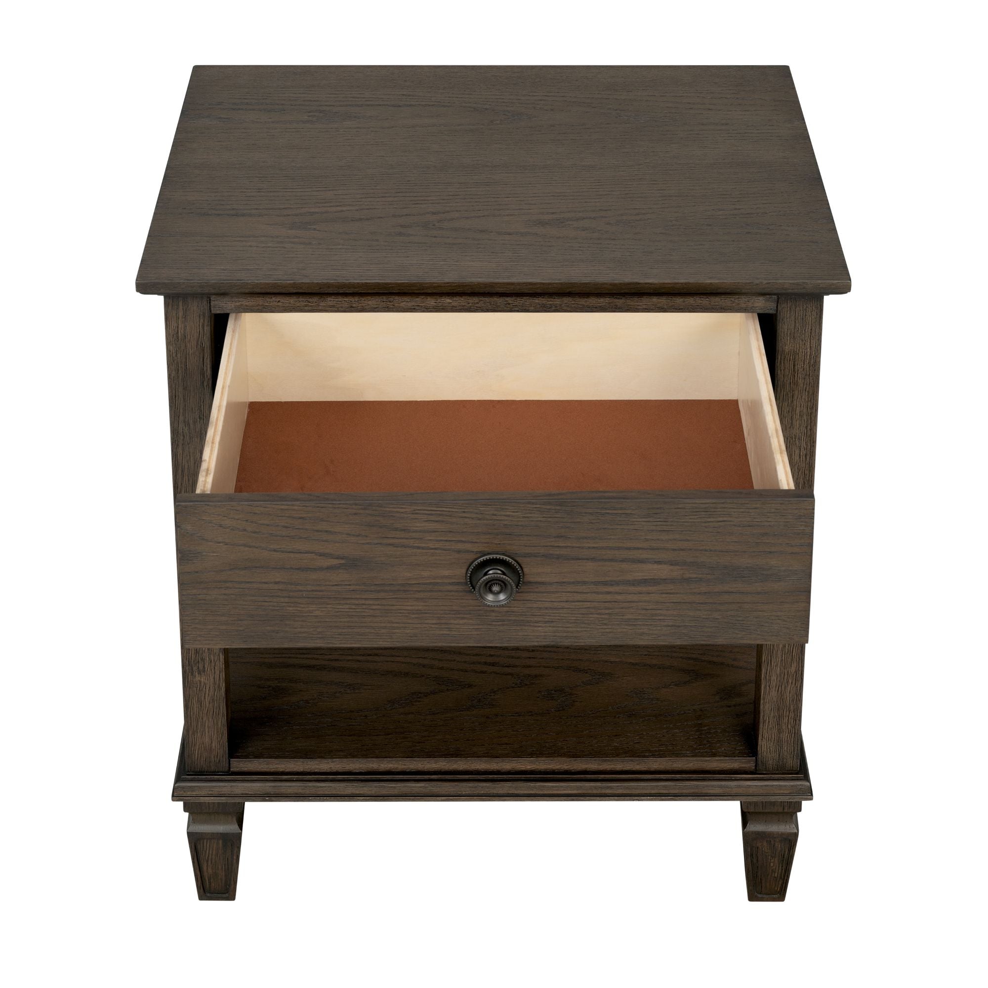 Elevate your bedroom or living space with a compact, versatile nightstand that blends traditional charm and everyday practicality. The Victoria Nightstand features warm wood tones, a smooth-gliding drawer, and an open lower shelf to keep bedtime essentials or living-room accents neatly organized, while tapered legs and visible wood grain lend a refined, timeless look.