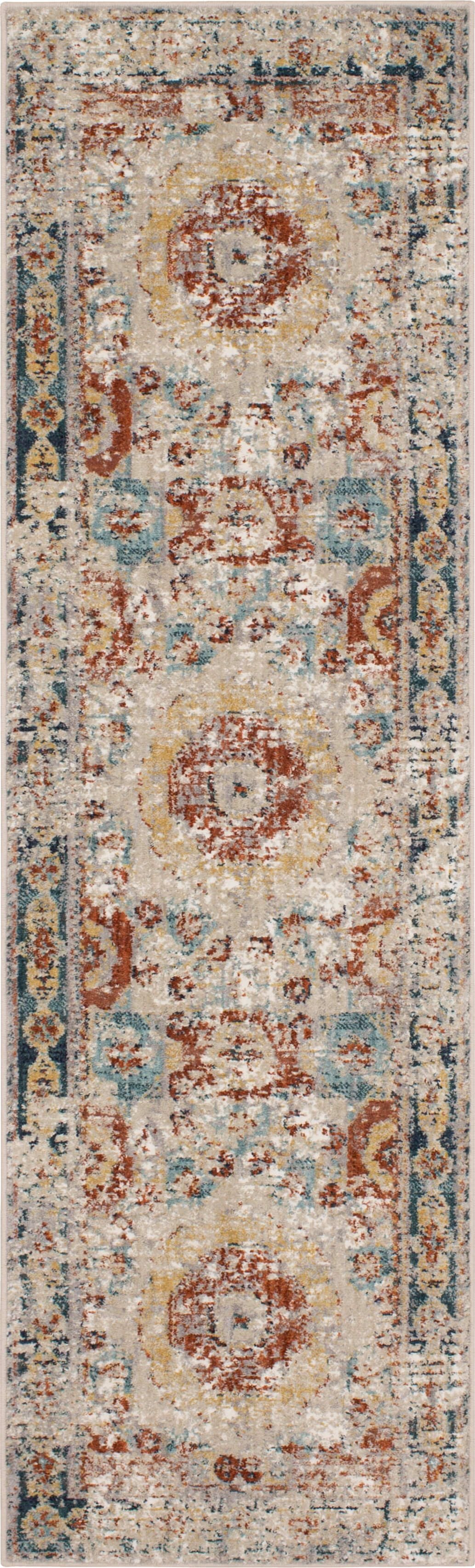 Globally inspired artistry cast in hues of biscotti beige, indigo blue, aquamarine, rust, rose gold, alabaster and grey is delightfully distressed in the modern transitional style of Karastan Rugs' Cristales Area Rug. Divine dustings of iridescent rose gold viscose glisten alongside plush SmartStrand® Triexta yarn and EverStrand™ recycled polyester yarn in the luxurious design debuts of Karastan Rugs' Soiree Collection. A chic cause for celebration, glamour, stain resistance and sustainability are wondrously woven together in this artistically influenced soiree of sought-after styles.- STYLISH DESIGN: From contemporary to mid-century modern, this trendsetting ornamental inspired area rug with a neutral color palette can be seamlessly integrated into a variety of home décor styles.