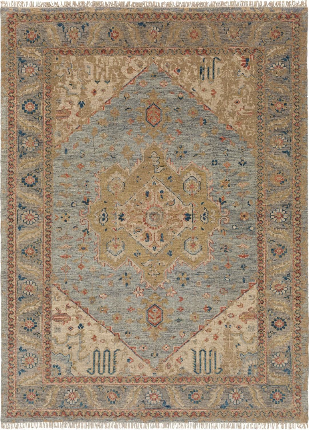 A cool splash of blue over neutral hues of beige adds an intriguing and unexpectedly elegant element to the timeless and traditional design of Karastan’s Talmadge Area Rug in Slate. Hand-knotted by skilled artisans with premium natural wool yarn, this debut of Karastan’s Paradigm Collection showcases the legendary Persian influenced artistry Karastan is known for. Renowned for its strength, stain-resistance and softness, this rug’s wool yarn offers the upmost in luxury and quality. Ideal for entryways, living rooms, kitchens, bedrooms, dining areas, offices and more, this style is also available in runners, 5’ x 8’ area rugs, large 8’ x 10’ area rugs and other popular sizes. Keep your new rug and the flooring beneath looking their best with an essential all-surface, earth conscious rug pad, crafted of 100% recycled fibers and certified Green Label Plus by The Carpet & Rug Institute!- STYLISH DESIGN: From casual to traditional, this trendsetting ornamental area rug with a rich color palette can be seamlessly integrated into a variety of home décor styles.