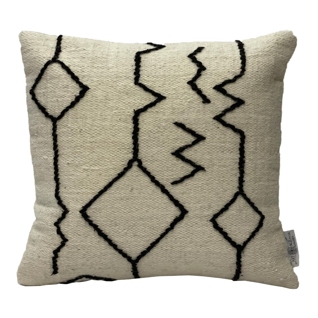 - Feature 2: NATURAL OFF WHITE COLORED BOHEMIAN STYLE PILLOW WITH BLACK DESIGN PATTERNS