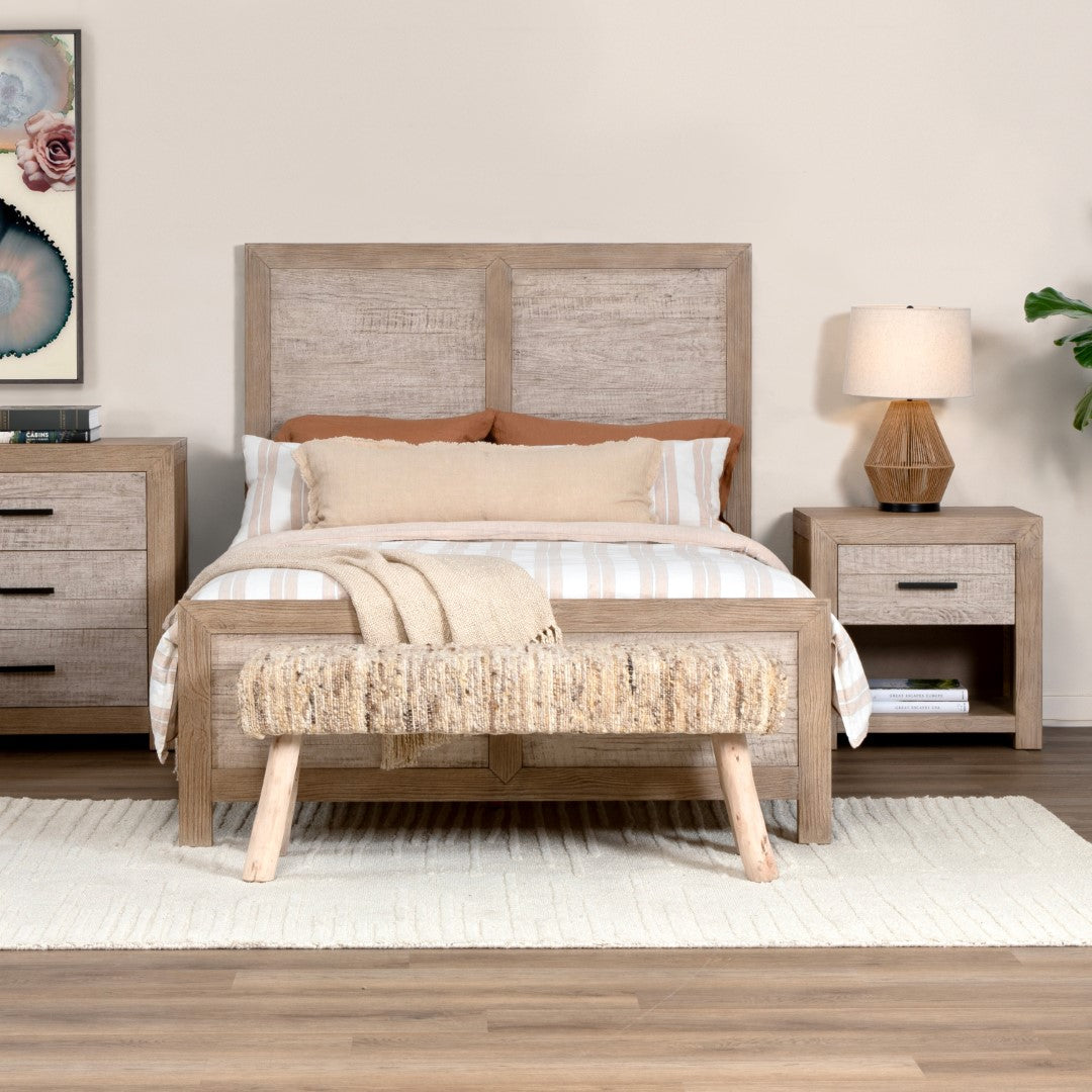 - Finished in Neutral Tone Upholstery and Natural Legs