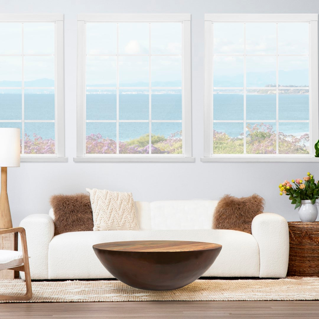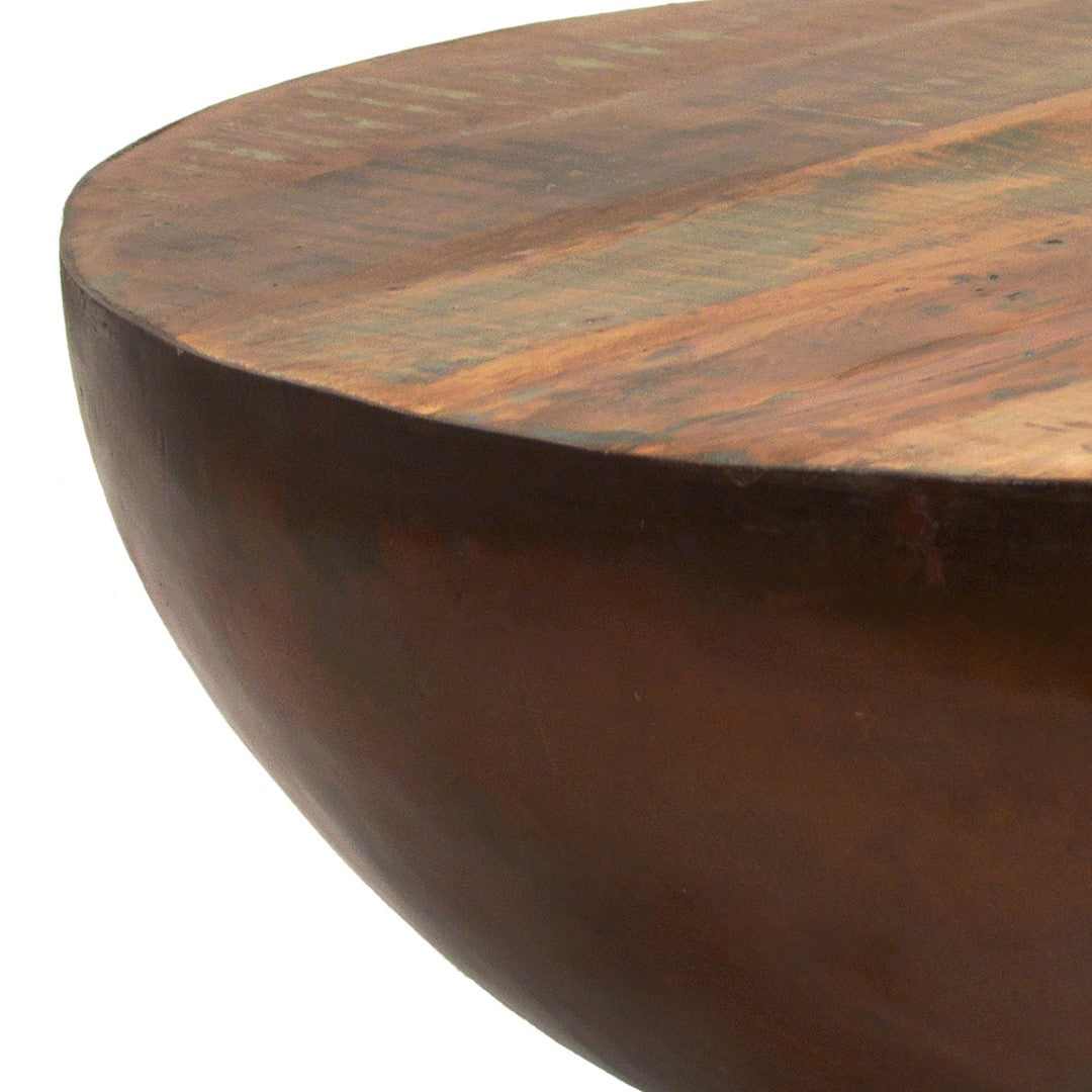 - Short Description: Urban Styled Mango Wood and Iron Half Sphere Drum Style Coffee Table in Antique Finishes