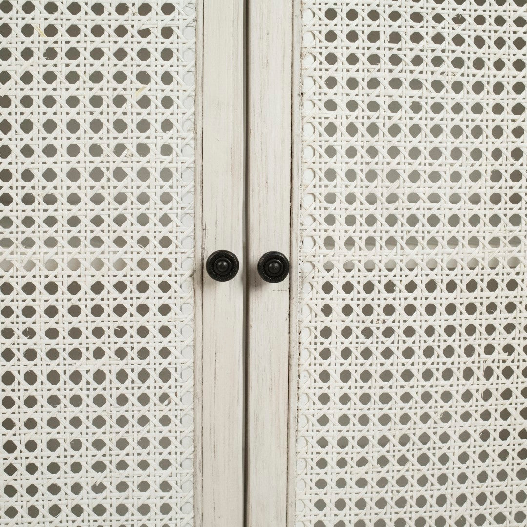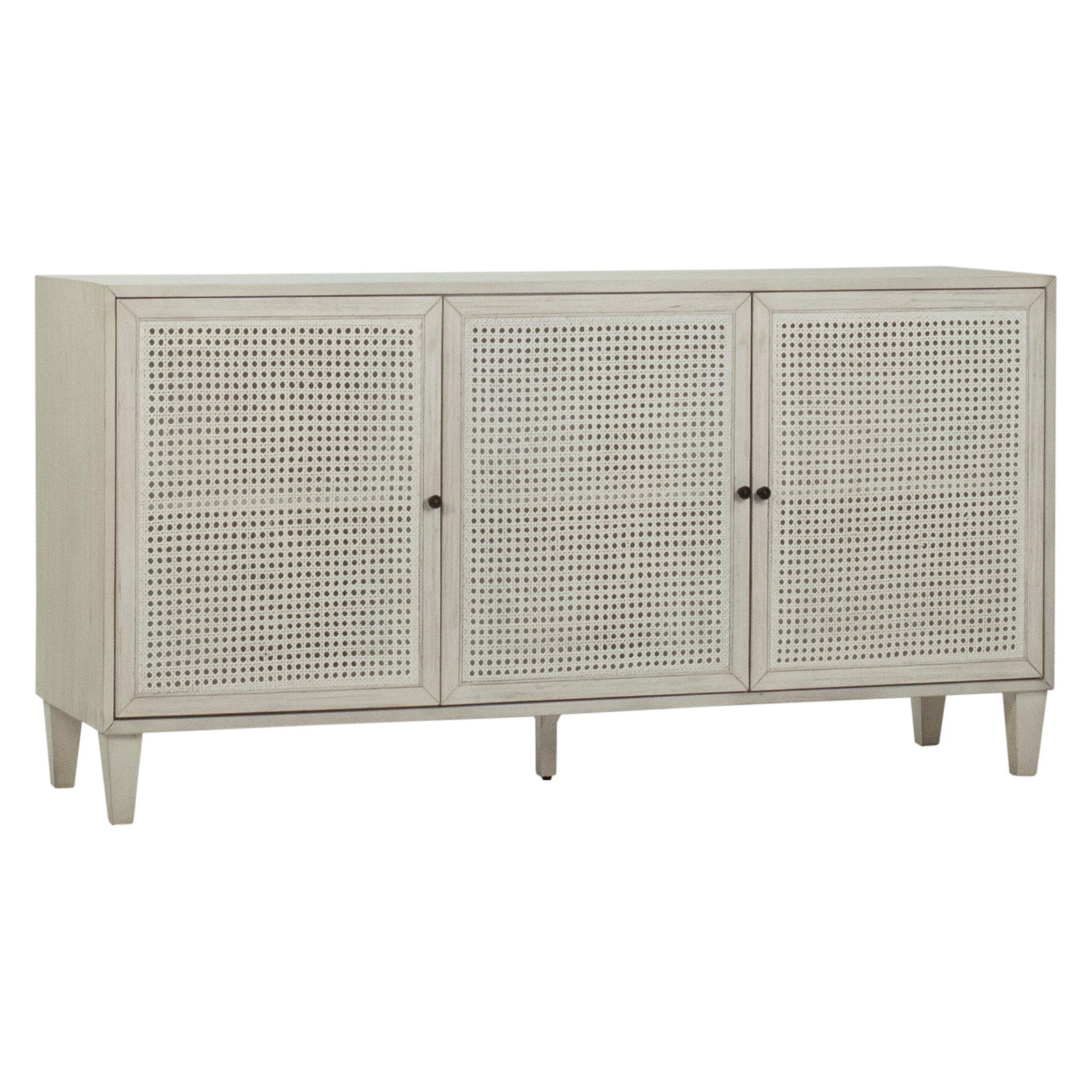 - Feature 3: THREE LARGE DOOR FRONTS WITH BUILT IN SHELVING FOR ADDED STORAGE AND BLACK IRON DOOR PULLS