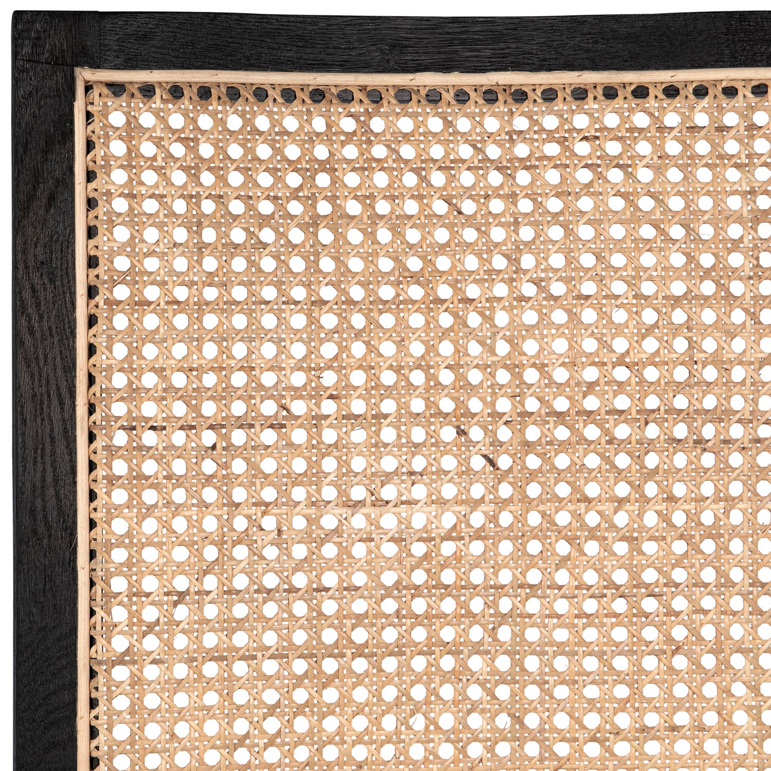 - Finish: Antique Black Frame with Natural Rattan and White Fabric