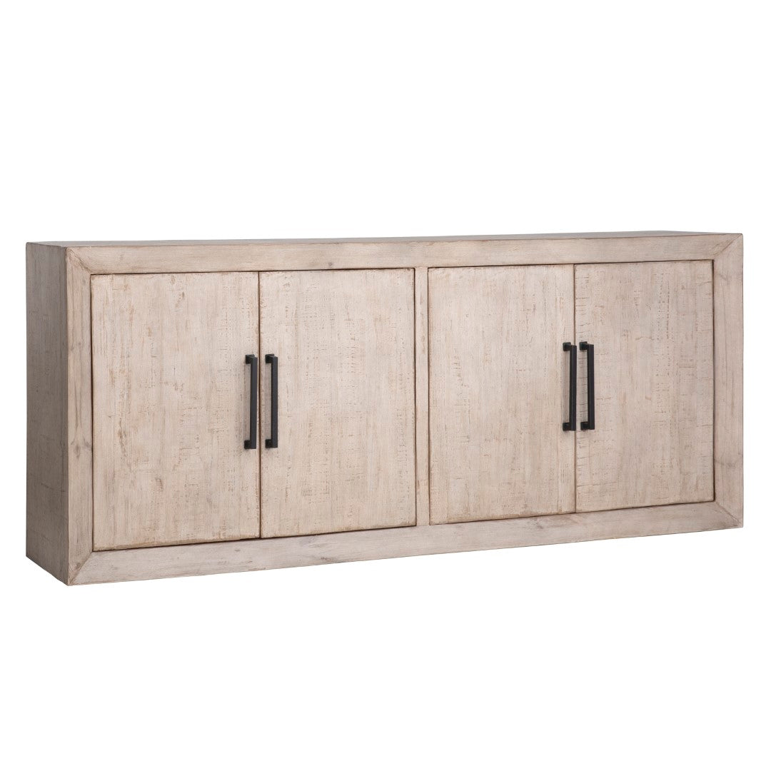 - Short Description: MODERN 4-DOOR SIDEBOARD DESIGN IN A LIGHT WARM WASH FINISH WITH MATTE BLACK HARDWARE