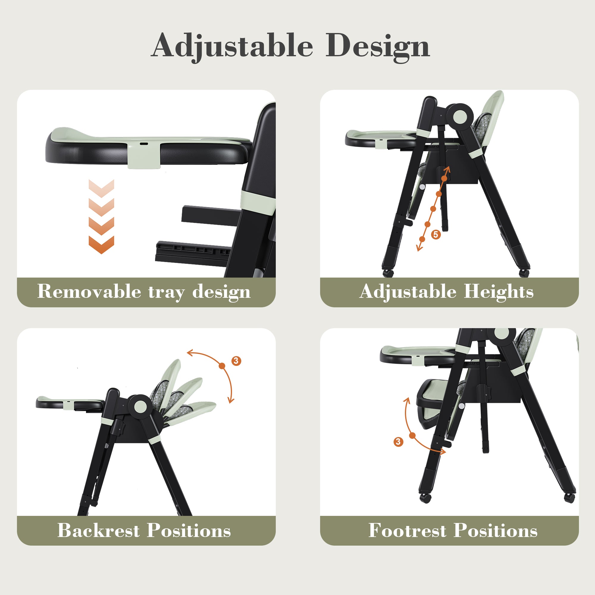 - Adjustable Dining & Play Tray: Features a detachable 2-tier tray (meal zone + activity area) with 3-position adjustments to accommodate growing children and activities.