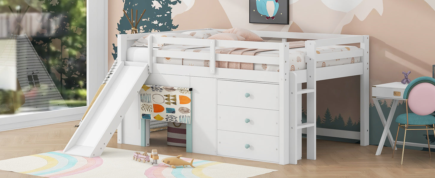 - Play & functionality: Low loft design leaves ample under-bed space for play, a study nook, or extra storage; includes a fun slide for added enjoyment