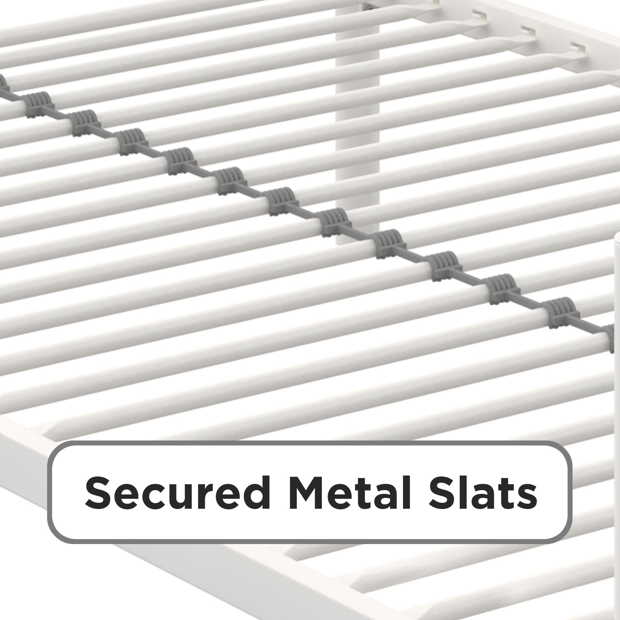 - Sturdy all-metal construction with secured metal slats for reliable support and long-lasting durability